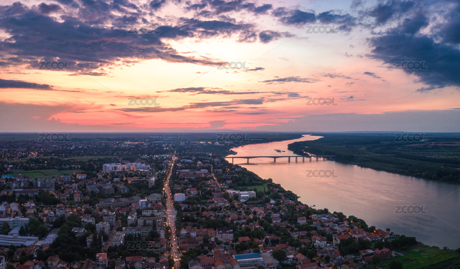 晴天傍晚塞爾維亞貝爾格萊德澤蒙小鎮(zhèn)晚霞