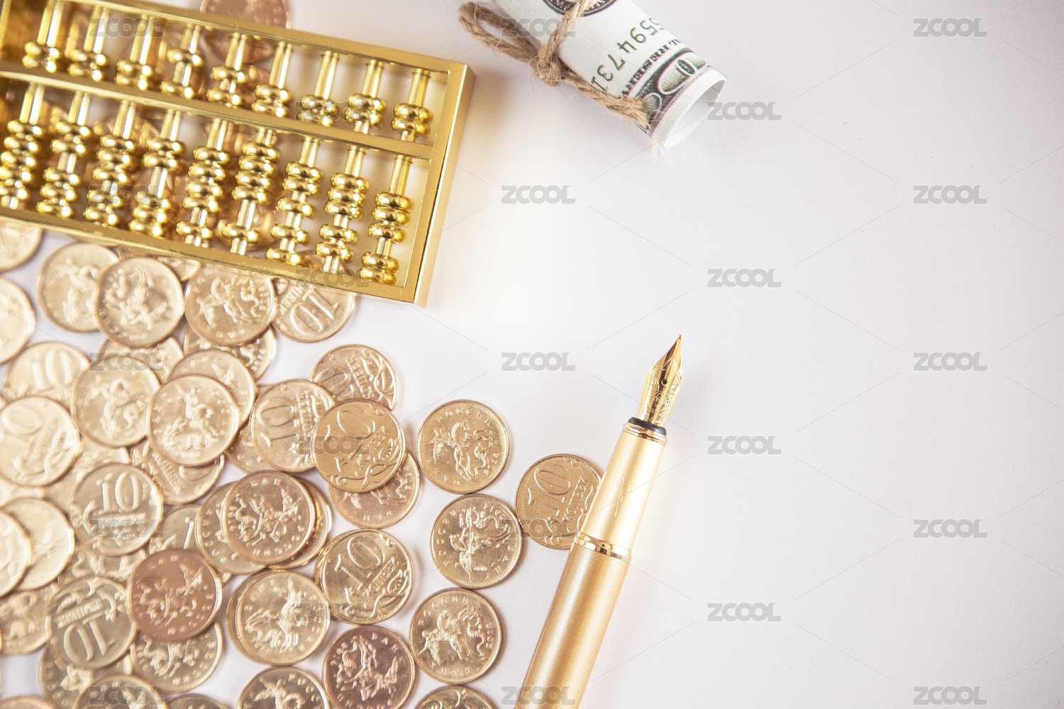 硬幣 紙幣 算盤(pán) 鋼筆 商務(wù)擺拍