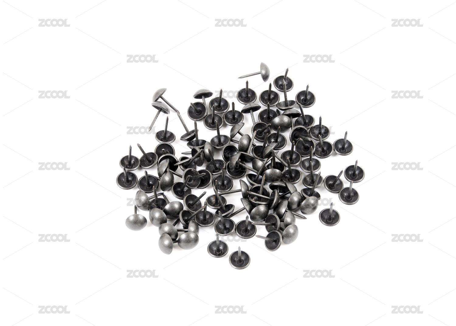 純白背景里一堆沙發(fā)釘