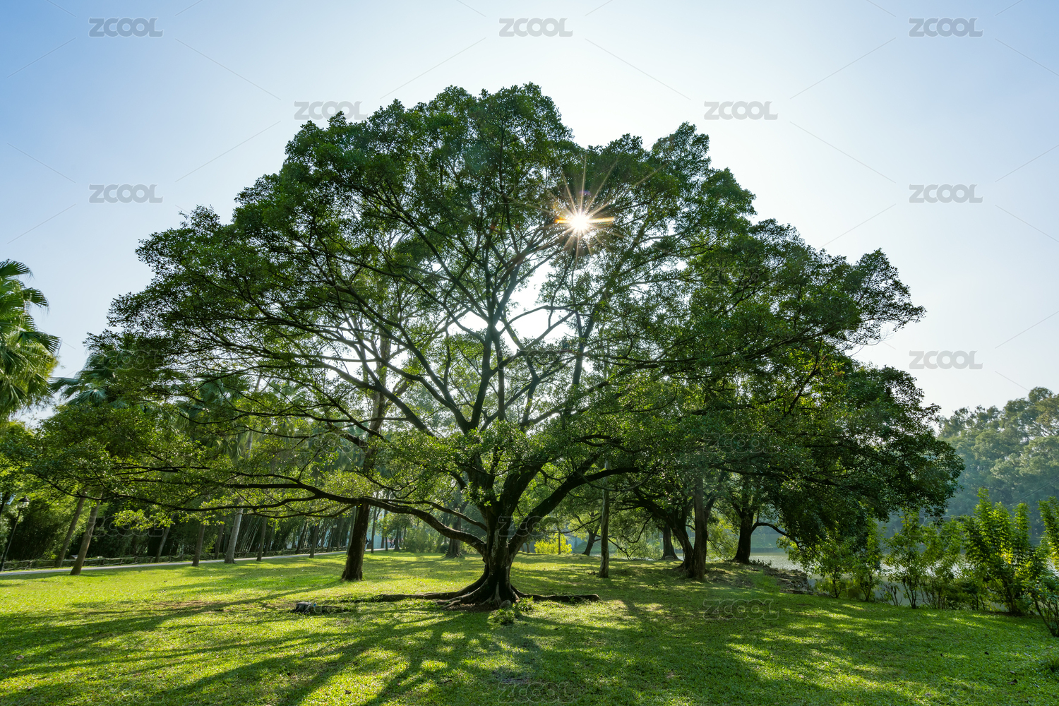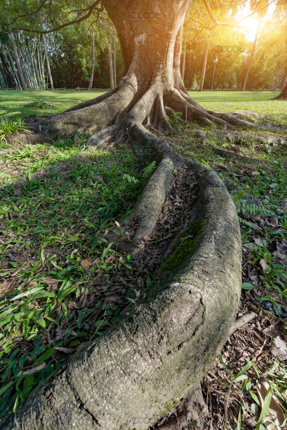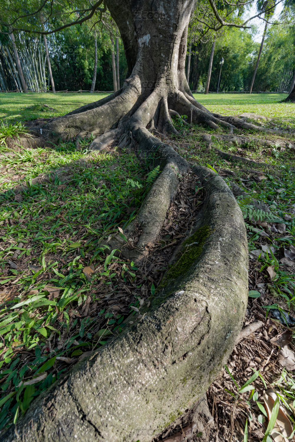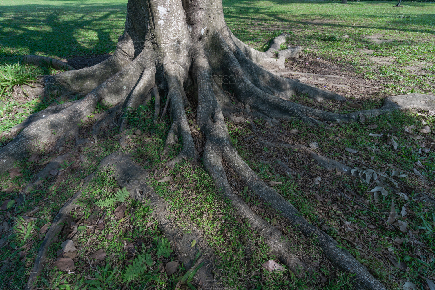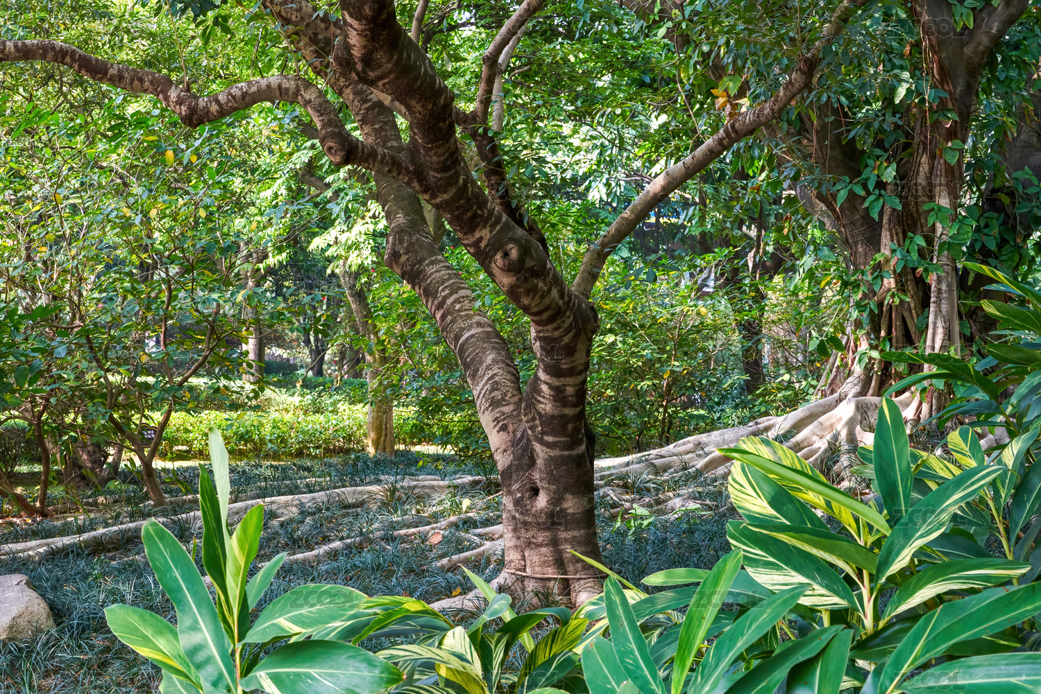 公園里茂盛的根系發(fā)達(dá)的榕樹
