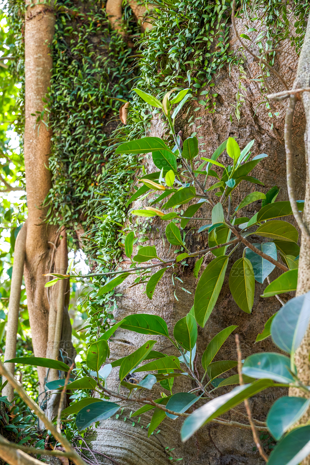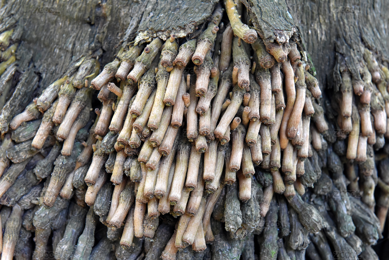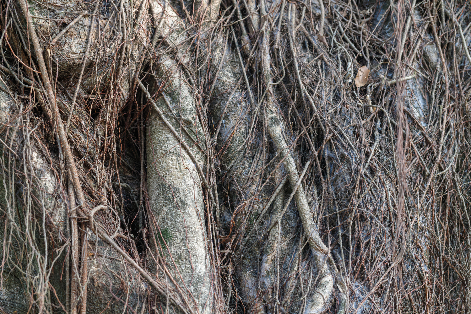 一棵百年老榕樹的樹干特寫