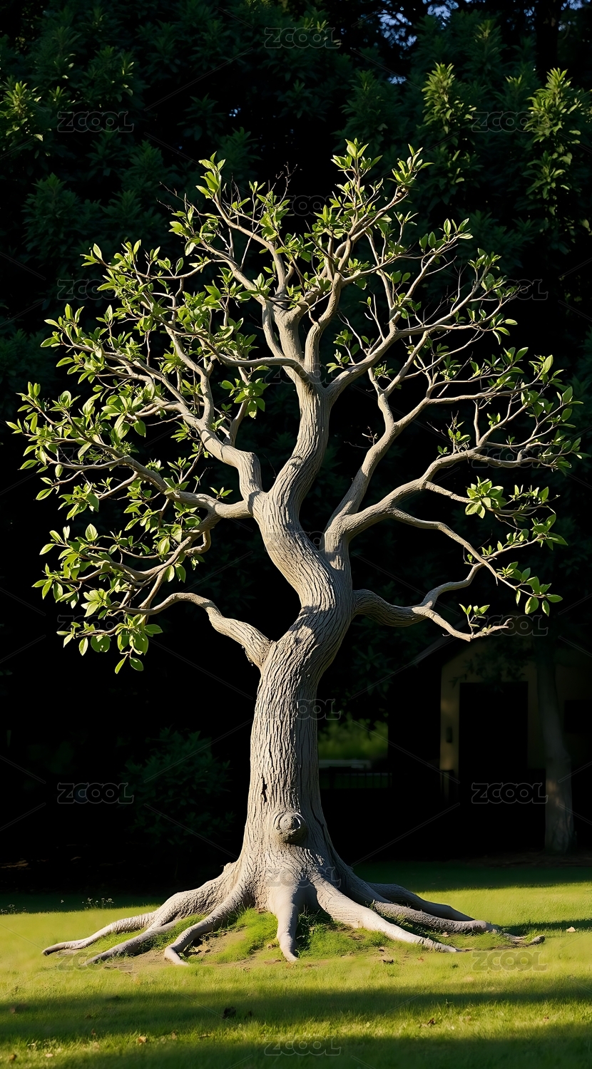 蒼勁古樹枝繁葉茂根系發(fā)達(dá)