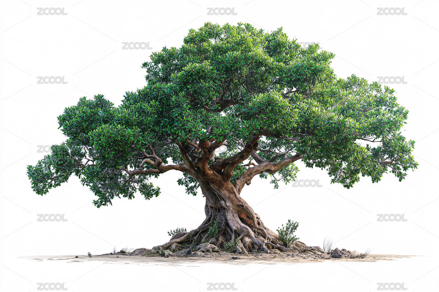 根系發(fā)達(dá)的茂盛大樹插畫素材