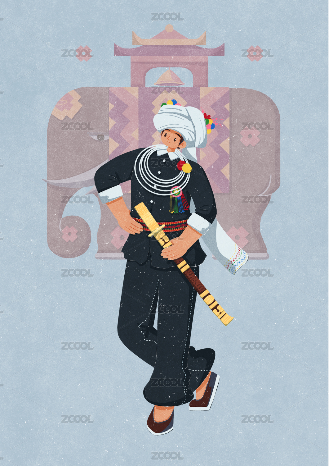 阿昌族佩戴戶撒刀的男性