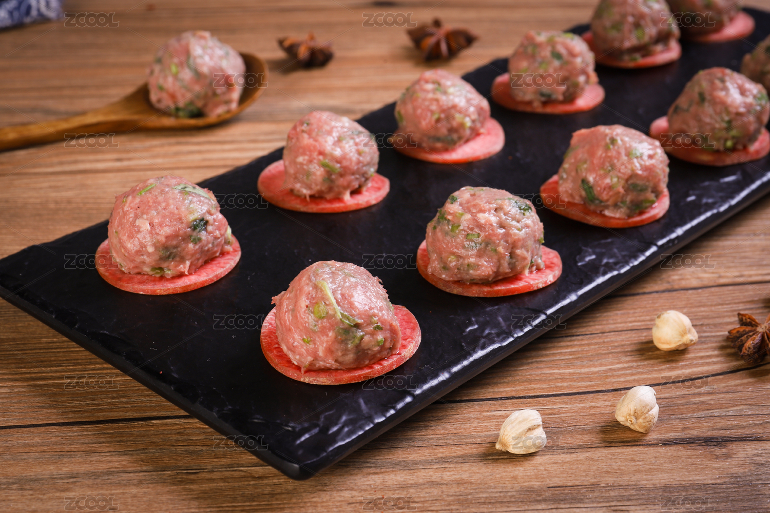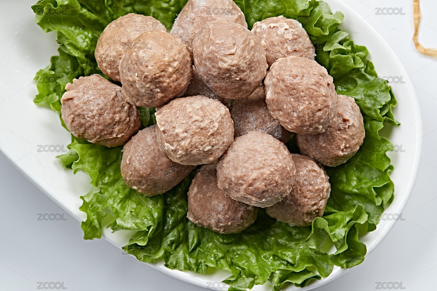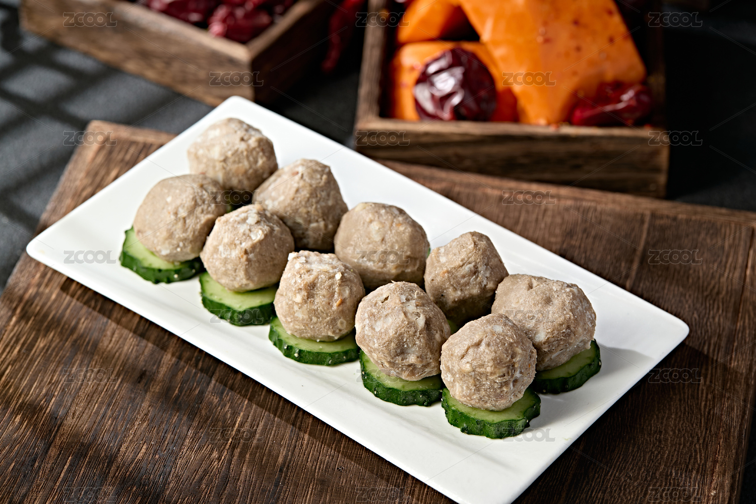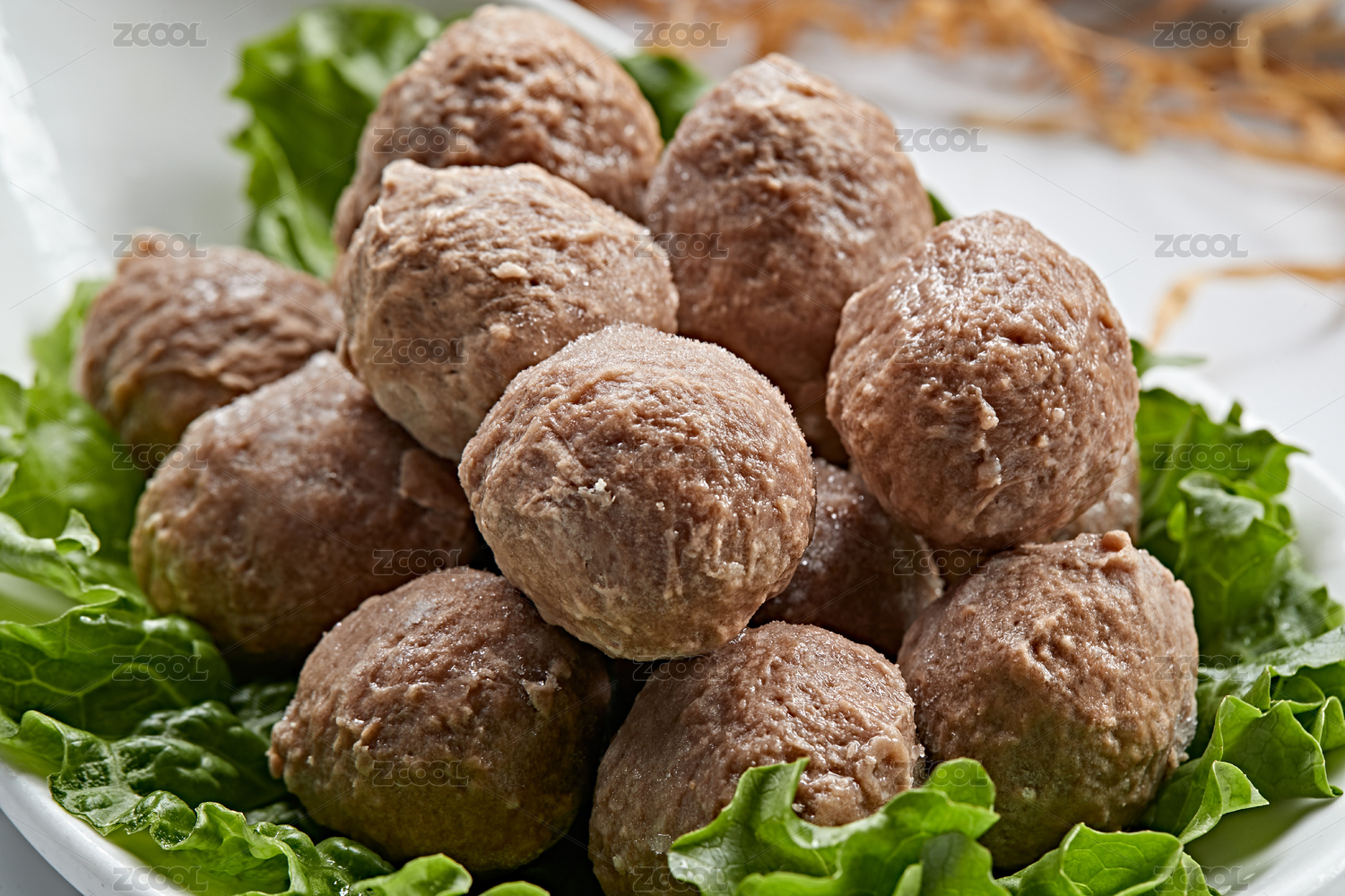 復(fù)古背景盤(pán)子里的手打牛肉丸