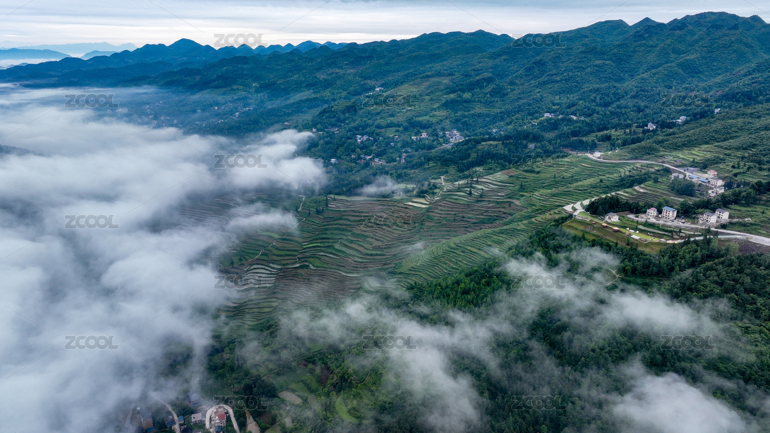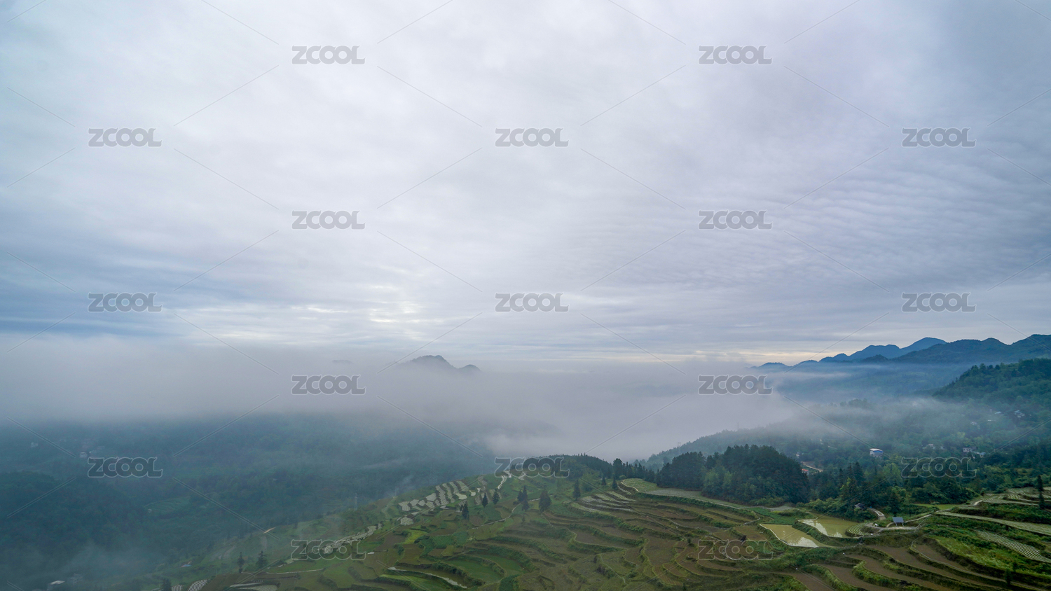重慶酉陽(yáng)晨霧滿梯田
