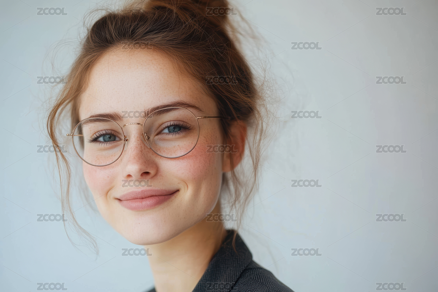 可愛清純女學生微笑眼鏡白襯衫3D人物形象