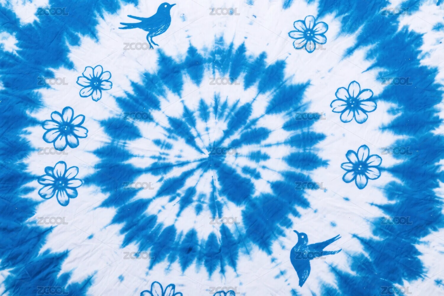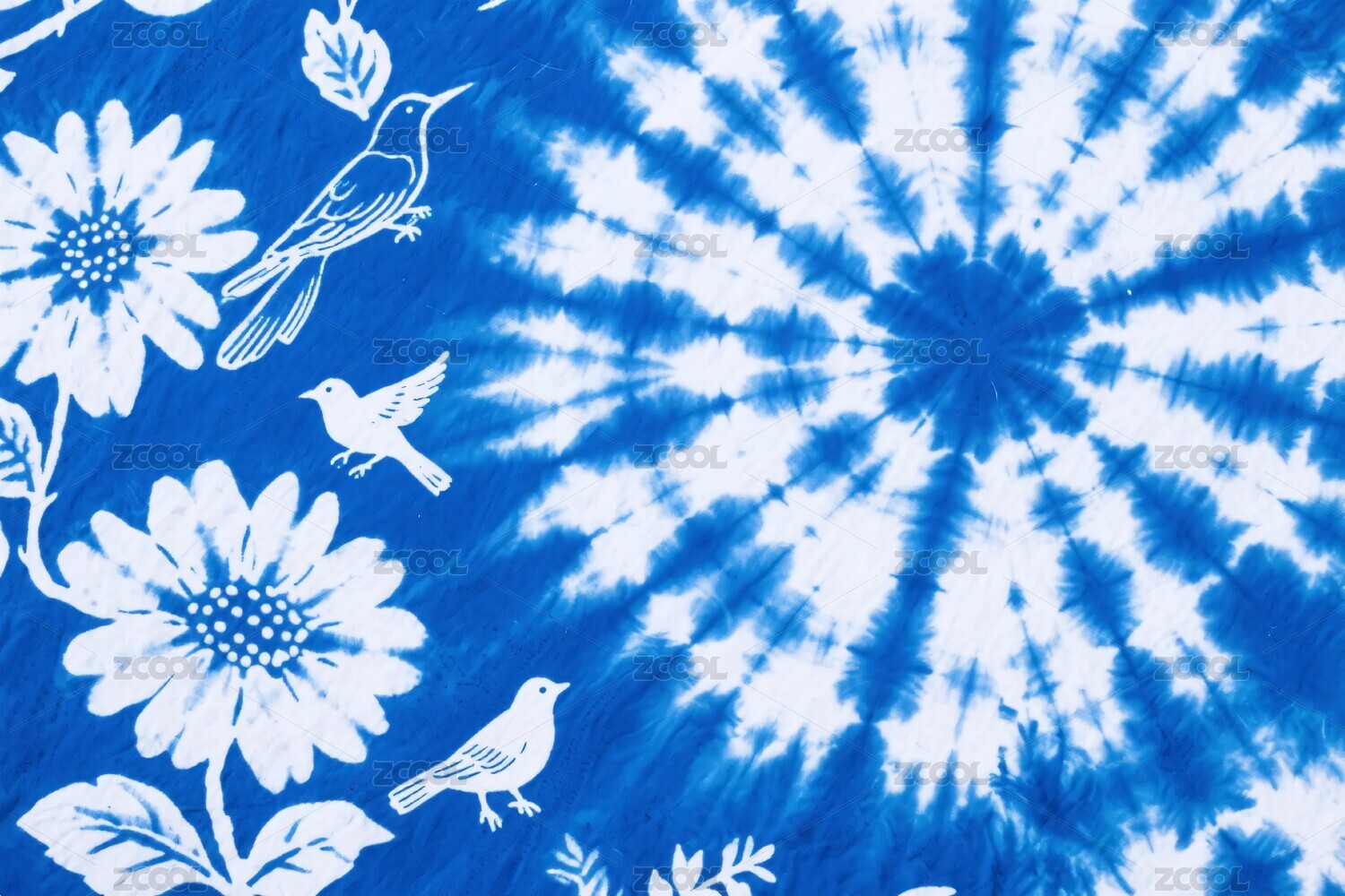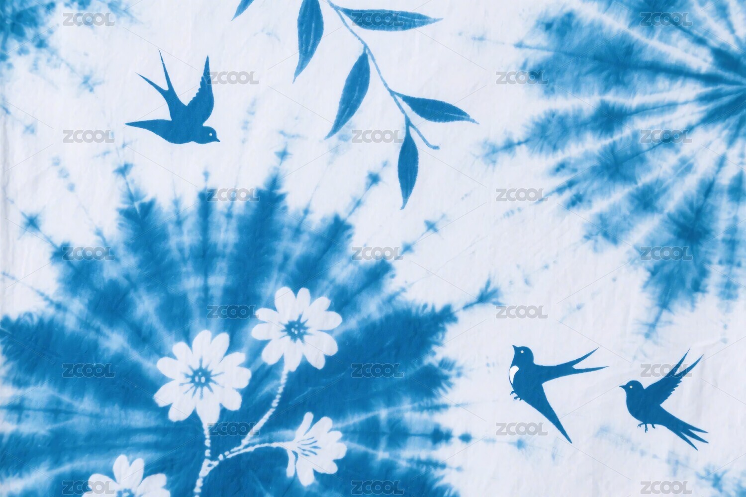 藍(lán)白扎染圖案帶花鳥元素