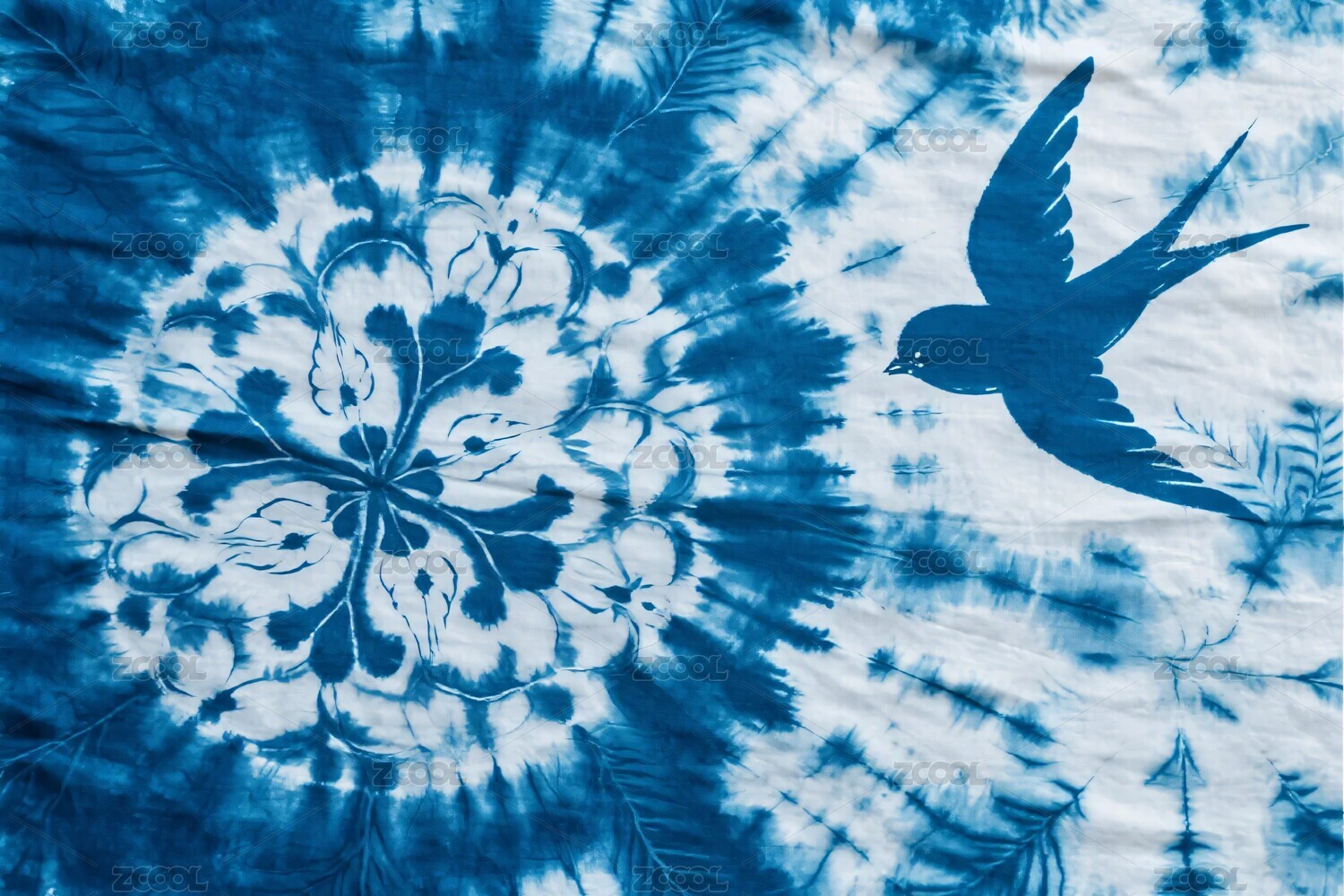 藍(lán)白扎染飛鳥藝術(shù)圖
