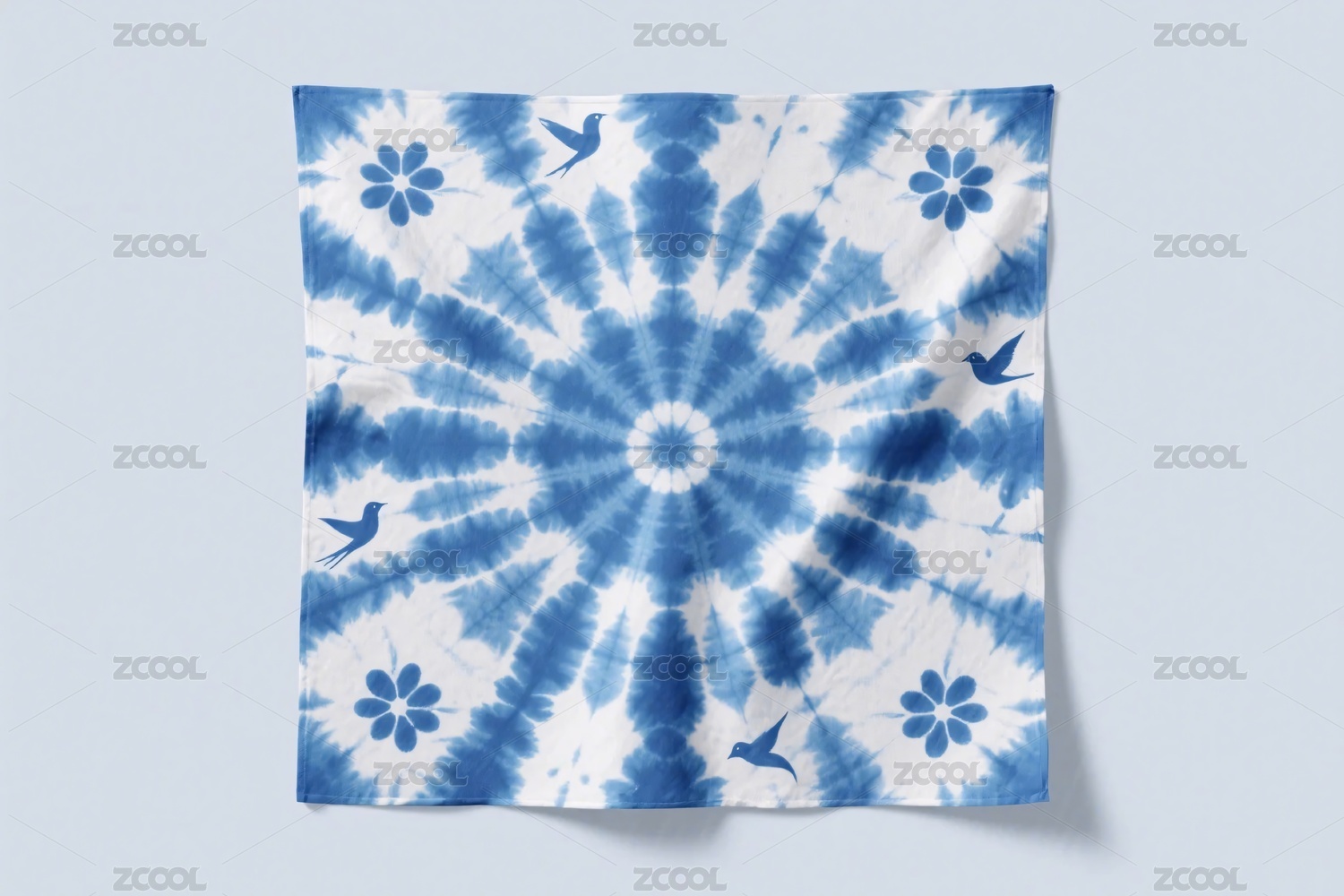 藍(lán)白扎染圖案手帕