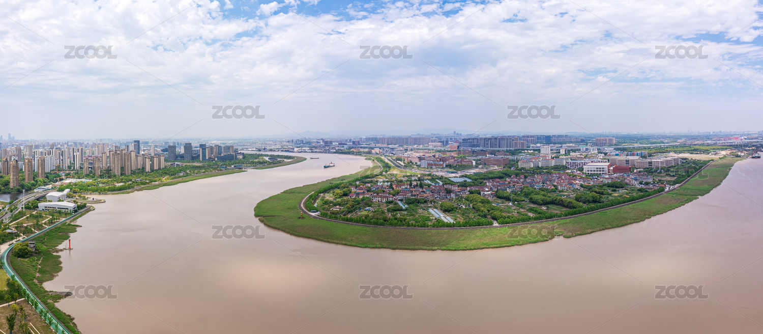 航拍中國浙江省寧波市老外灘甬江全景圖