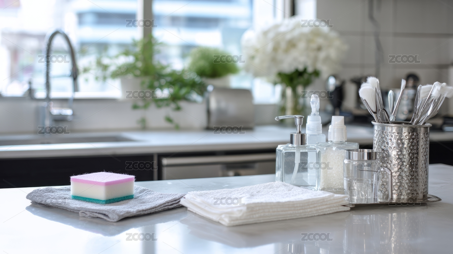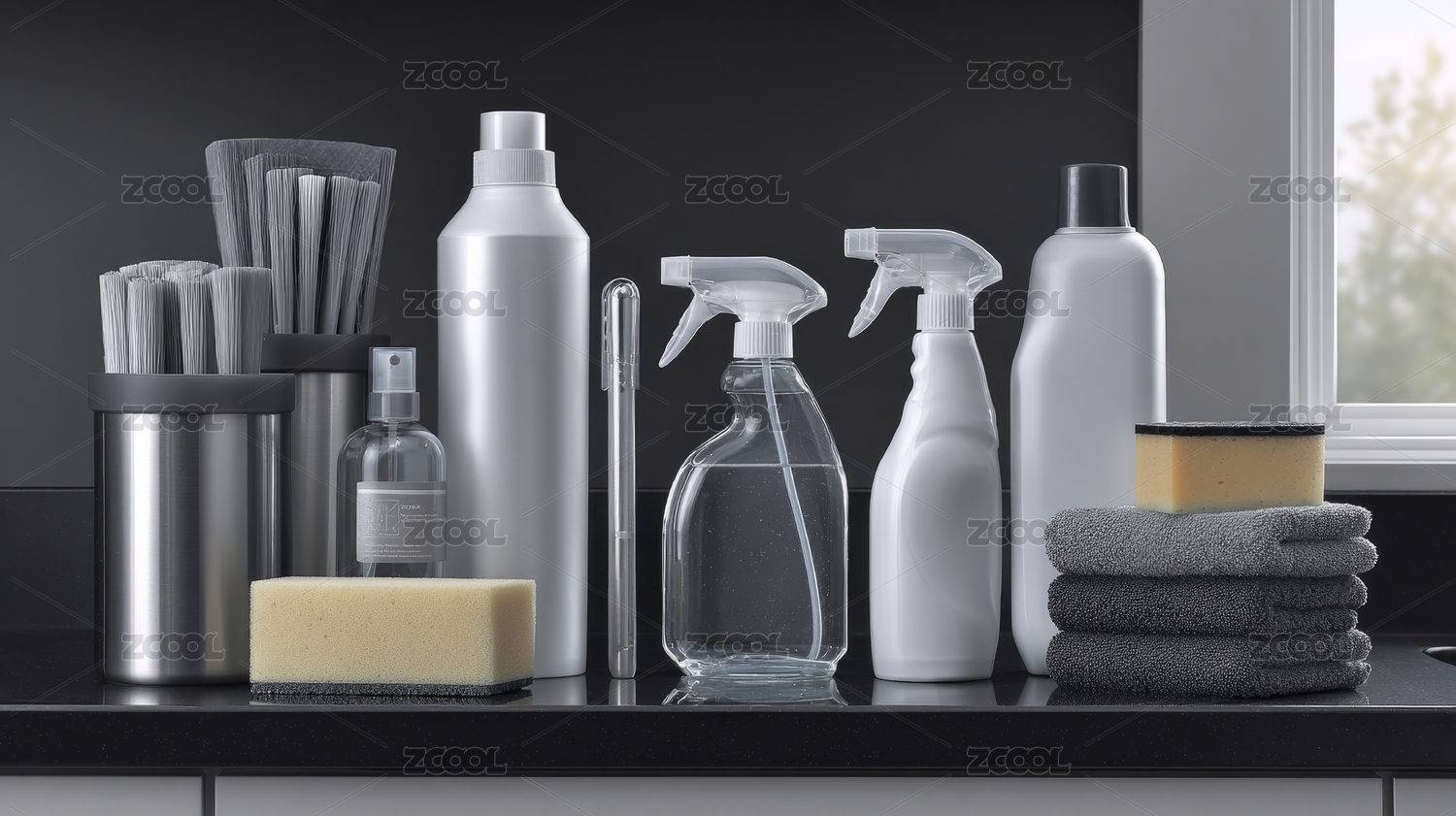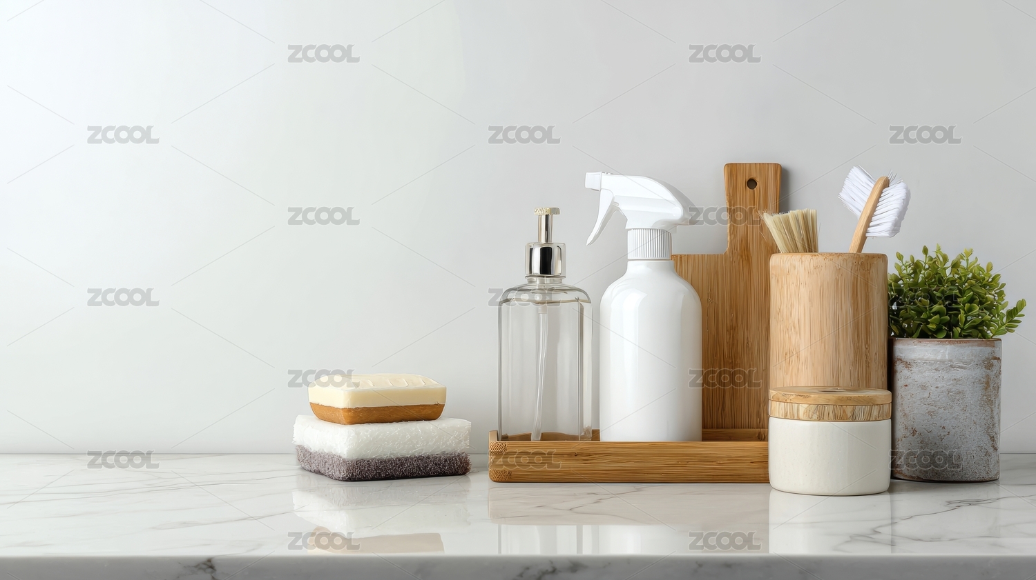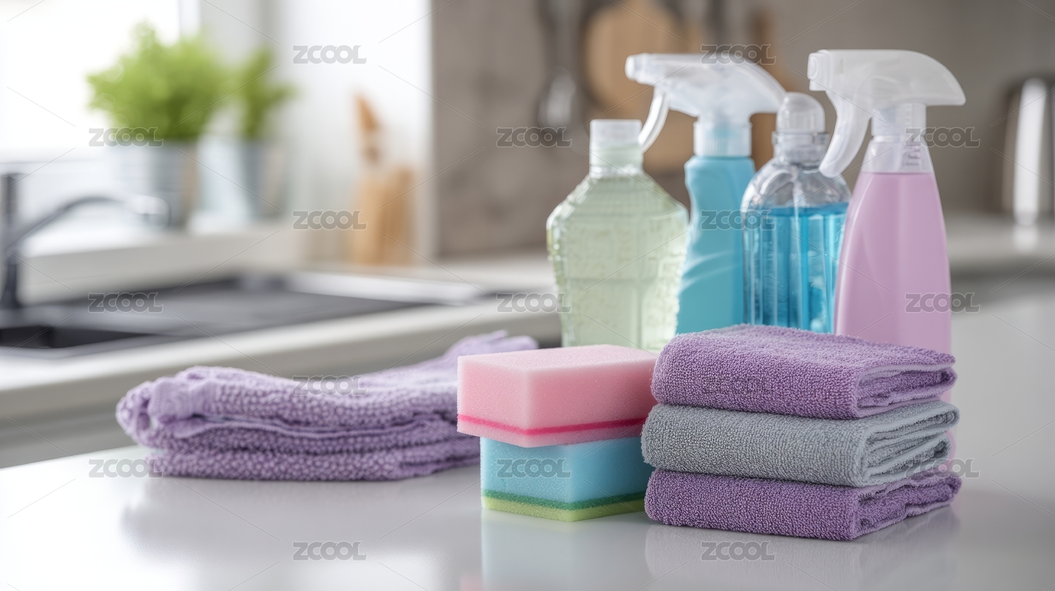 廚房中的多彩清潔用品,注重家庭衛(wèi)生與消毒