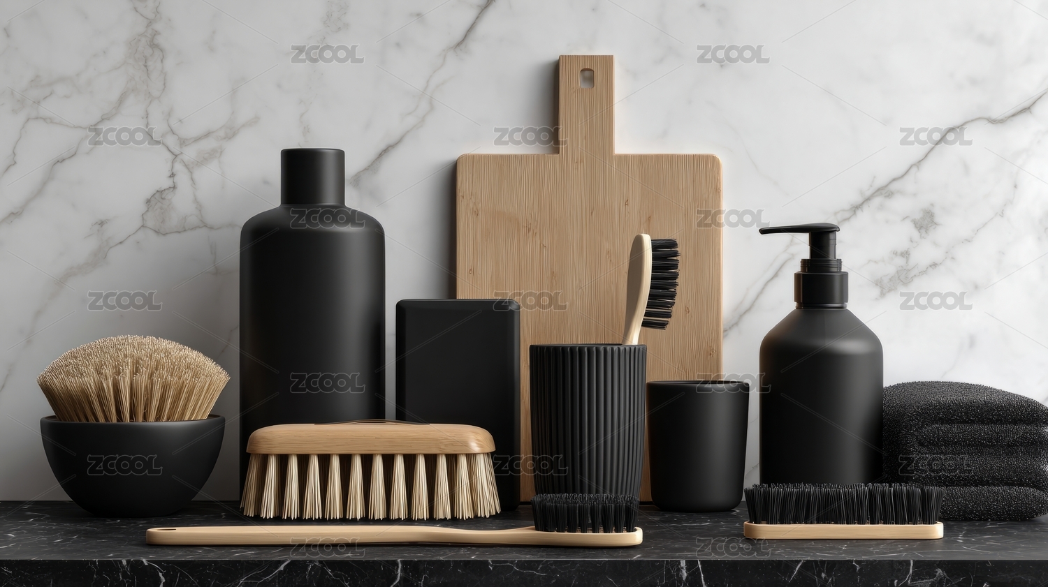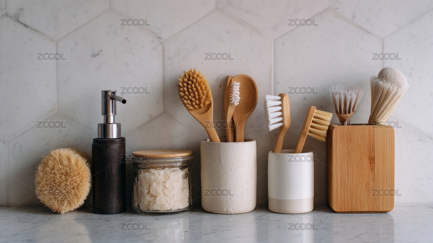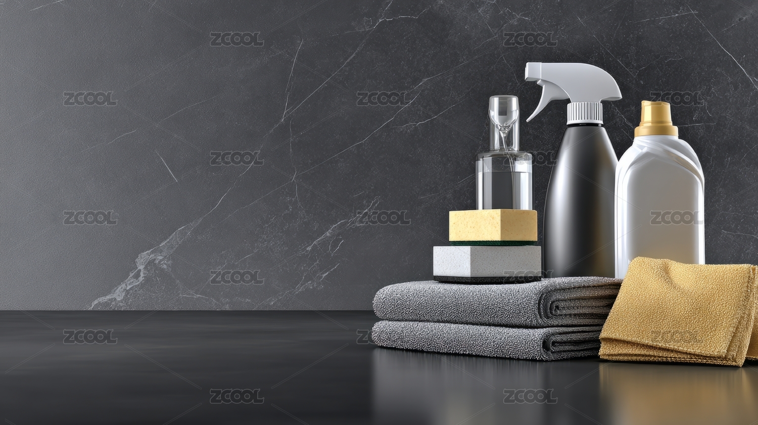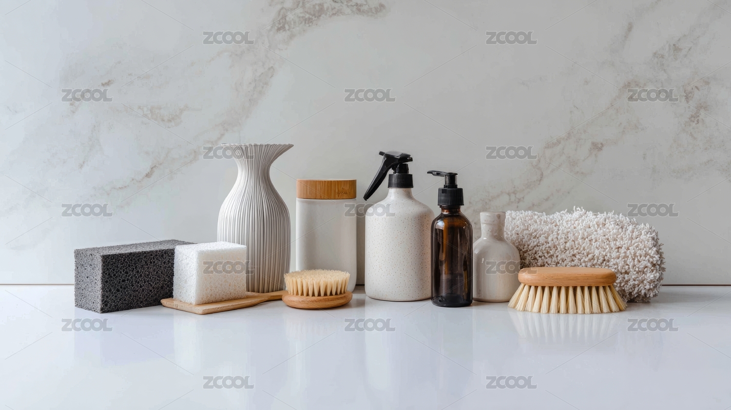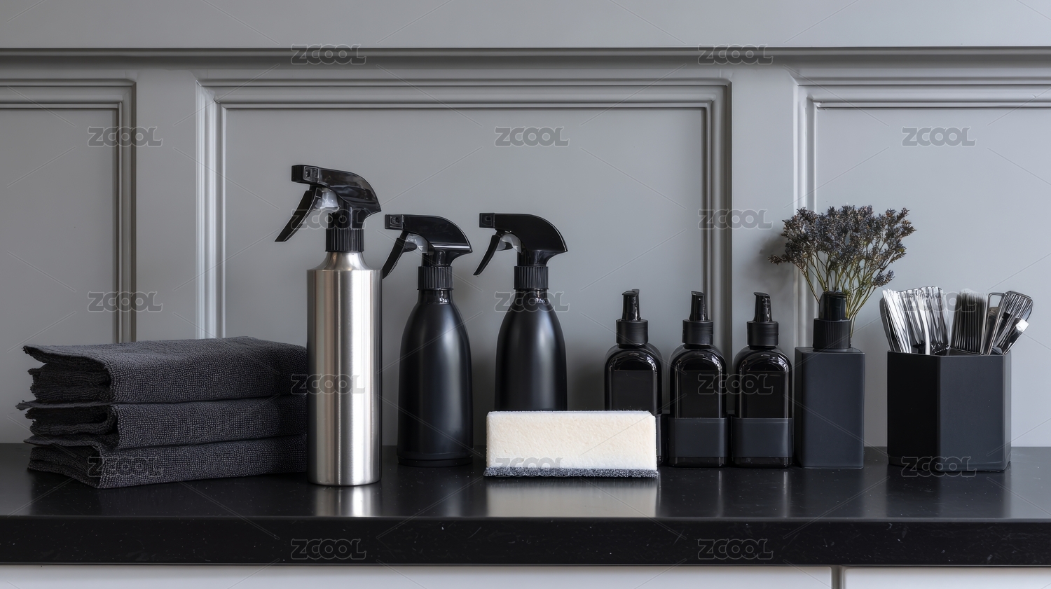 廚房中的多彩清潔用品,注重家庭衛(wèi)生與消毒
