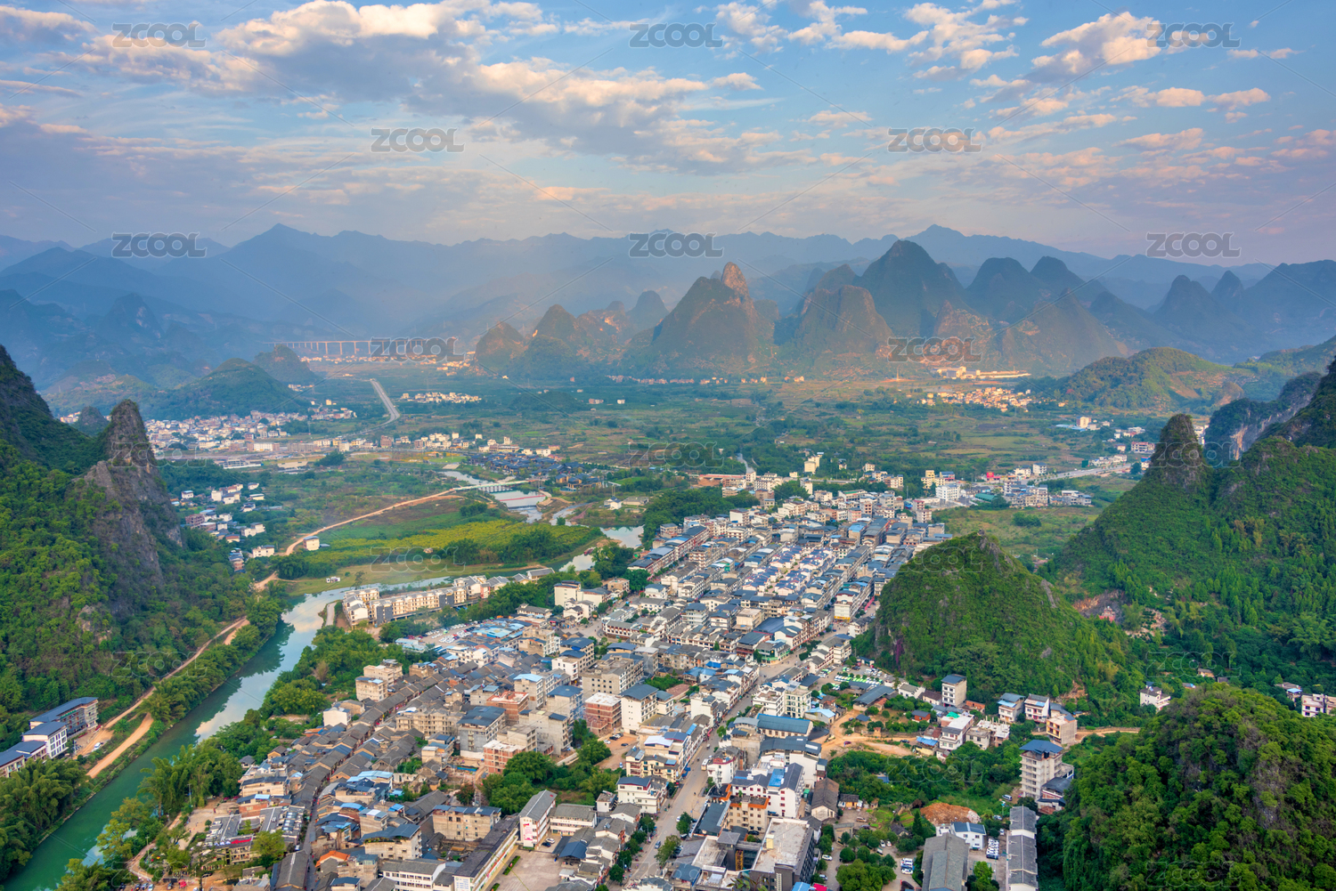 中國廣西桂林陽朔興坪古鎮(zhèn)全景