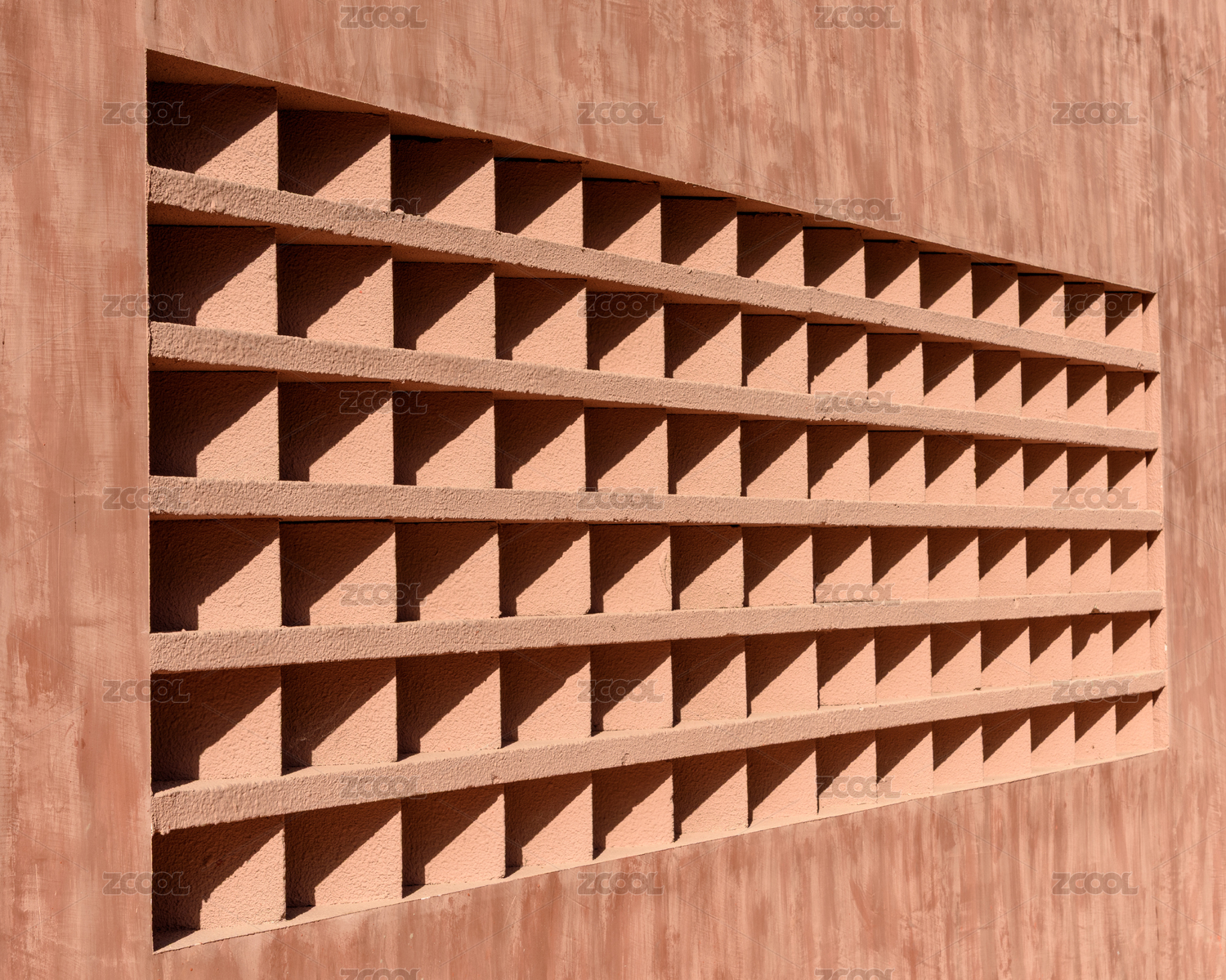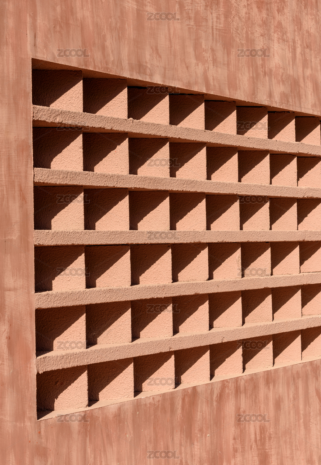 幾何格子圖案的紅棕色鏤空立體磚墻