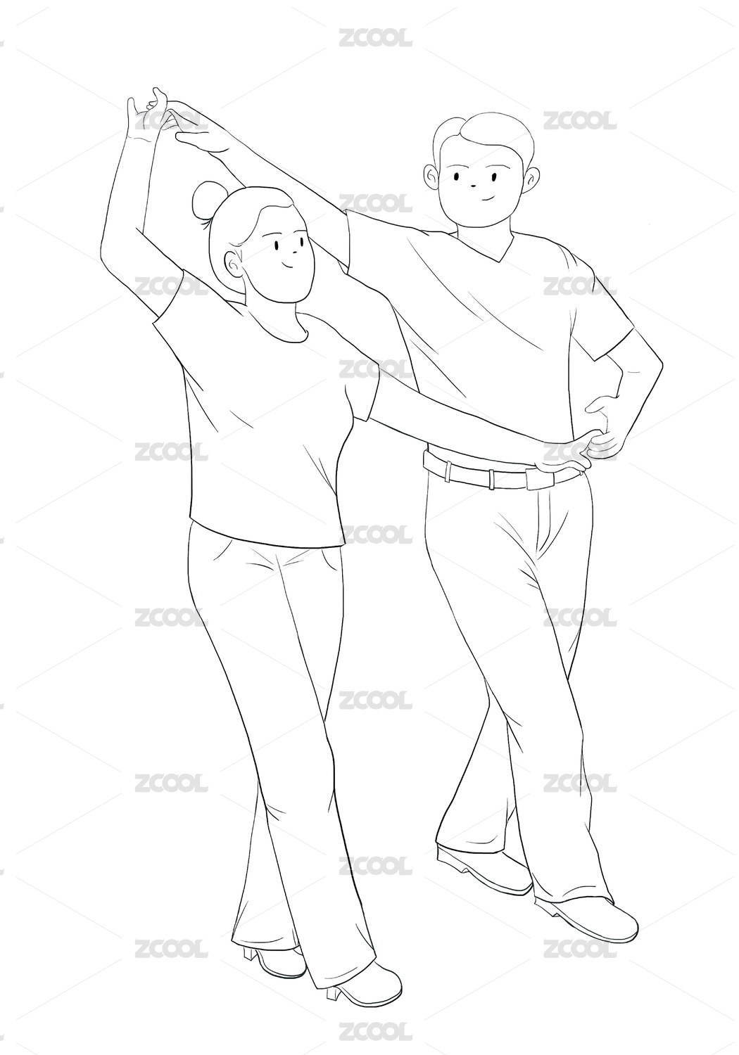 兩個跳交際舞廣場舞的中年男女插畫元素