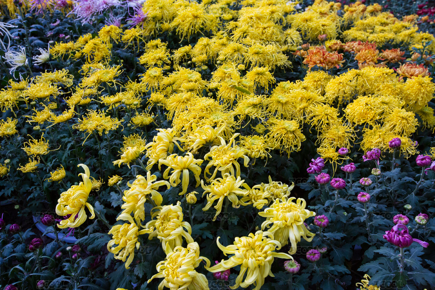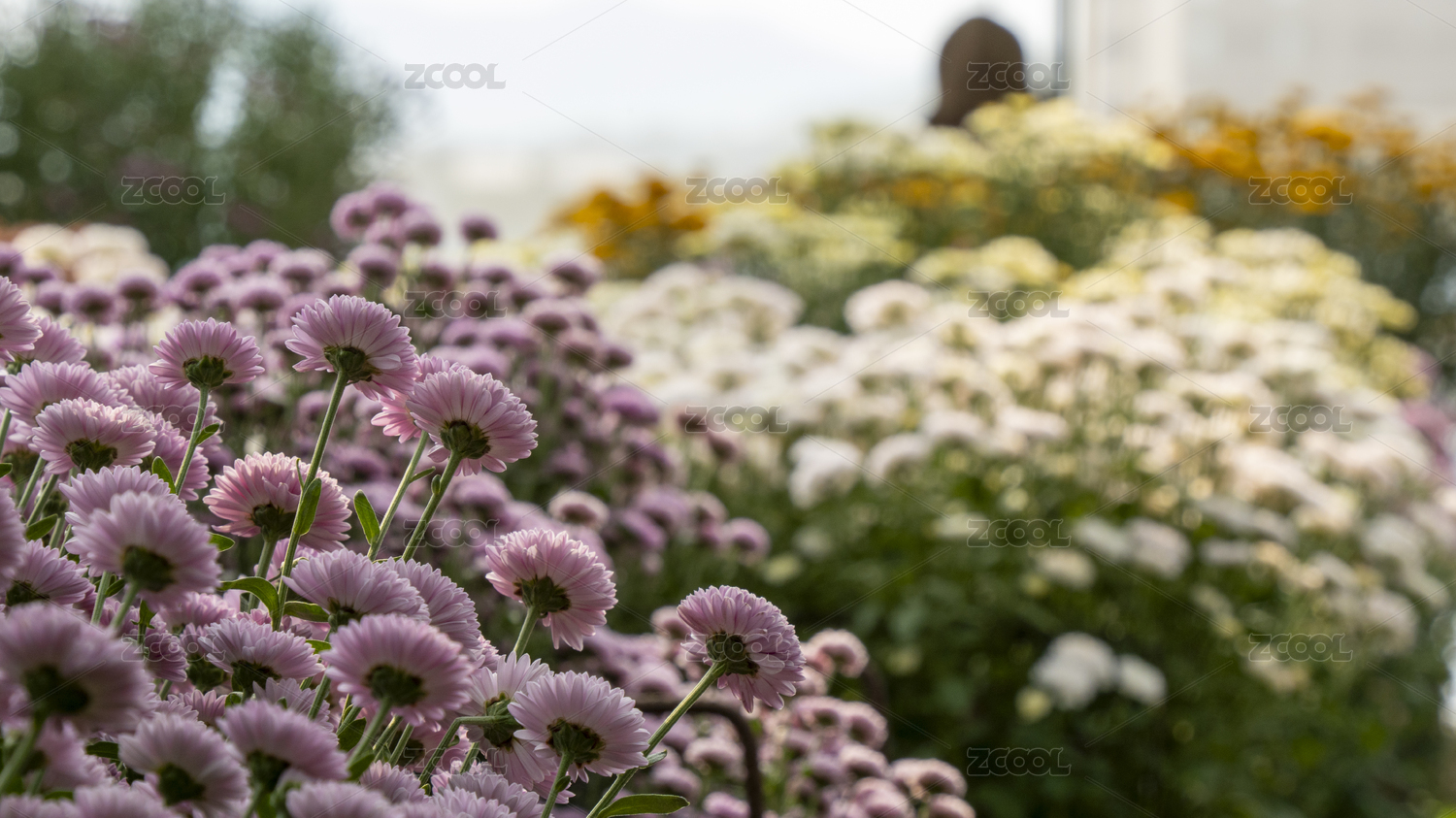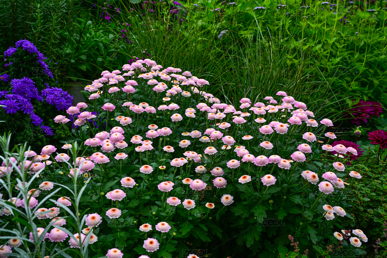 深圳仙湖植物園花展中盛開的粉色菊花花叢