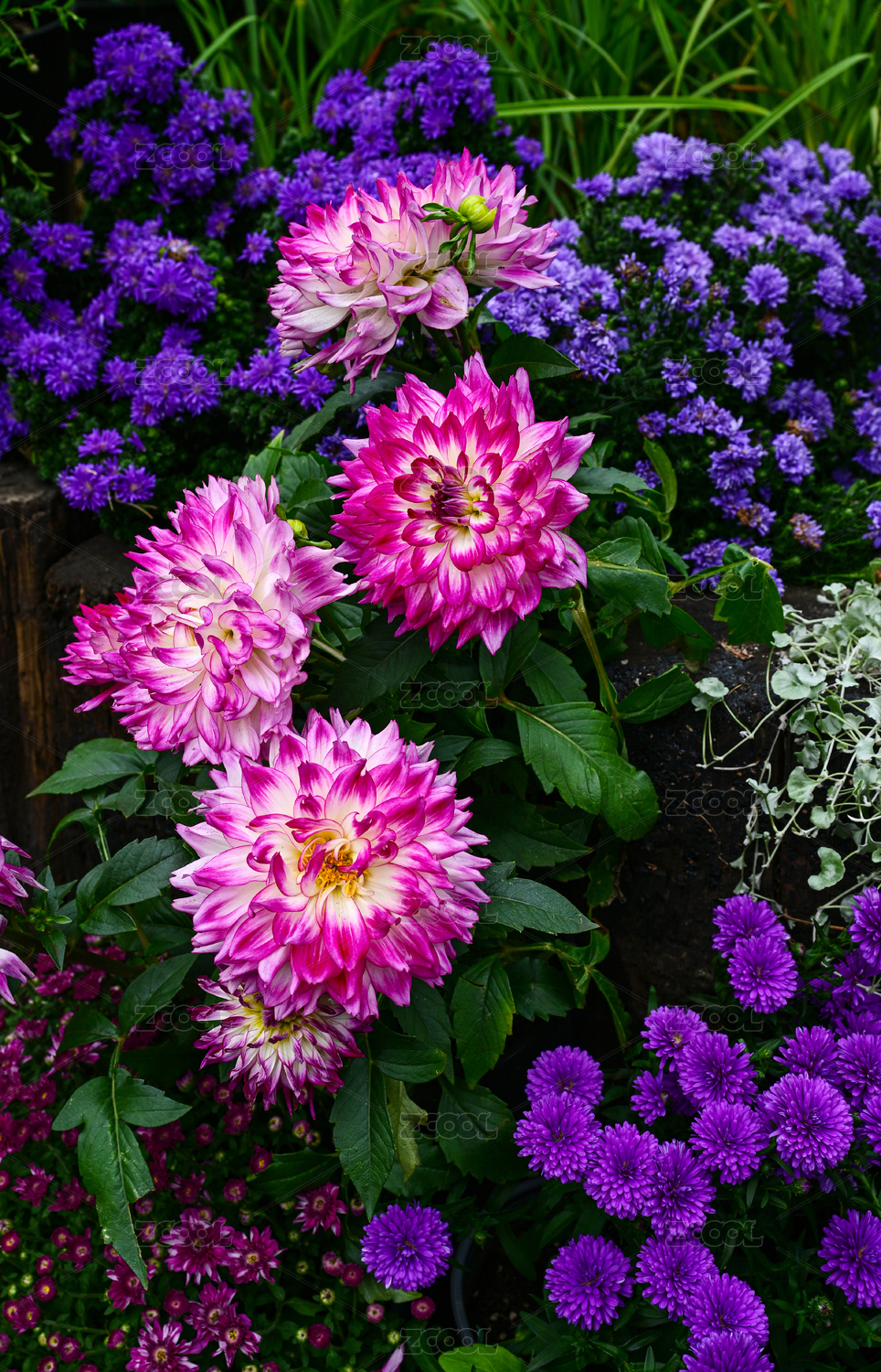 深圳仙湖植物園花展中盛開的紫色大麗花景觀