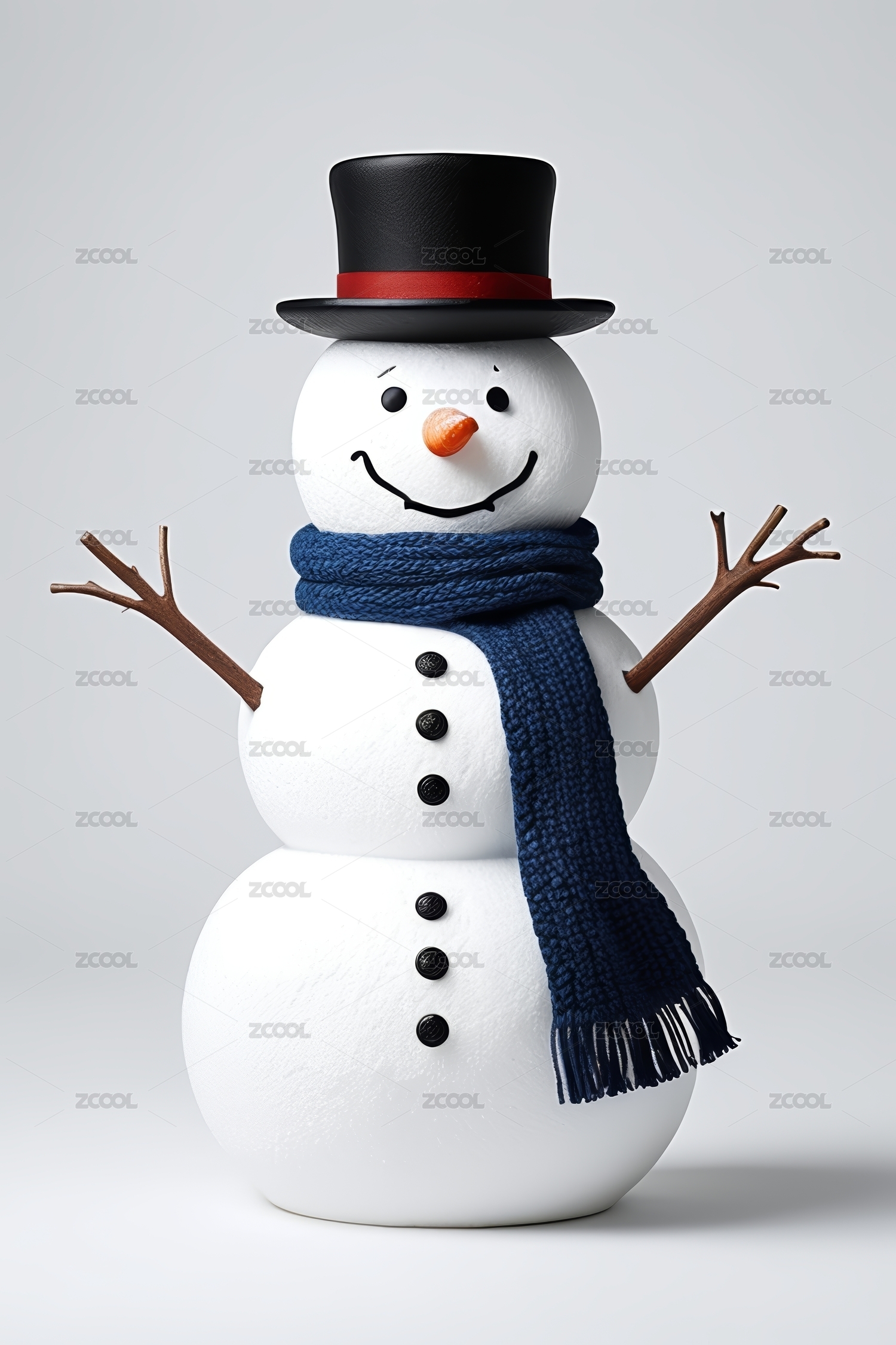 雪人戴著高頂帽子戴著圍巾高清圖片