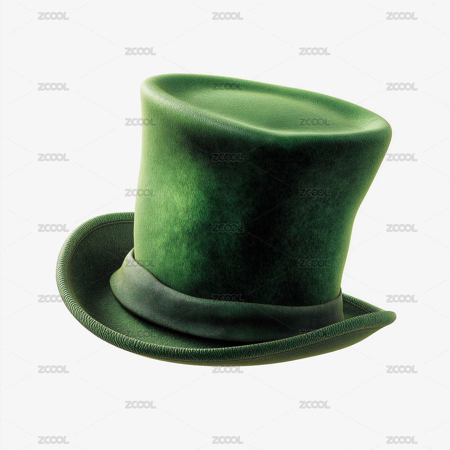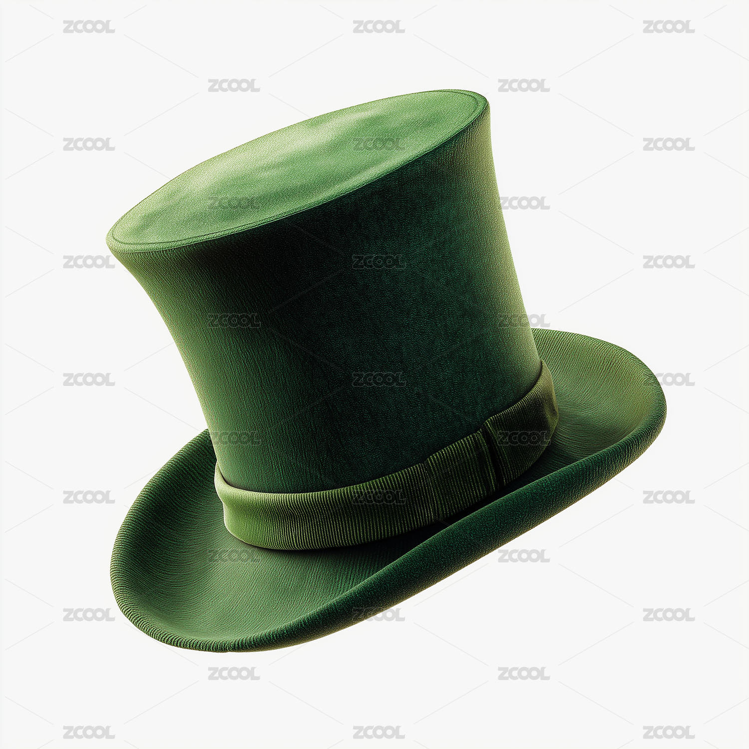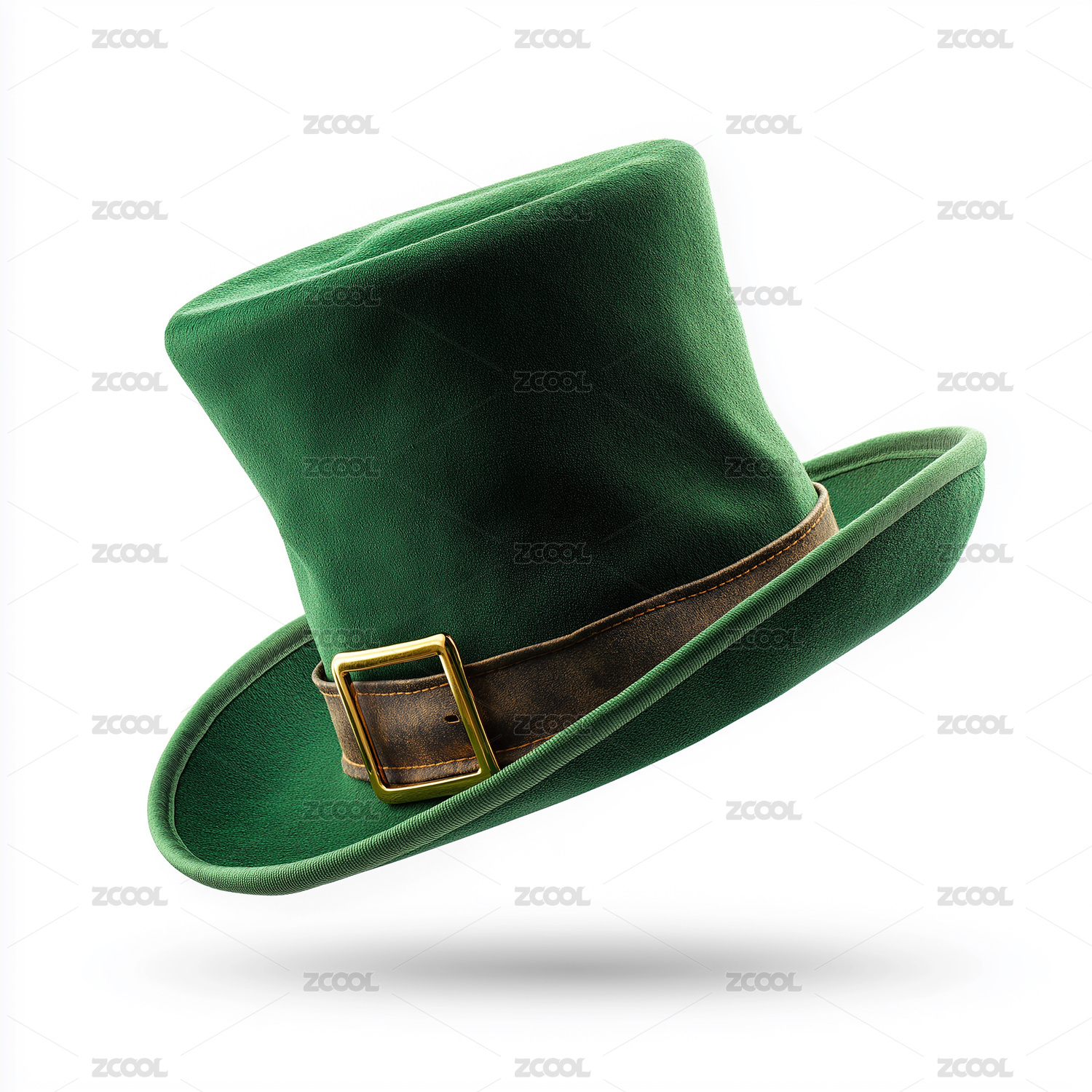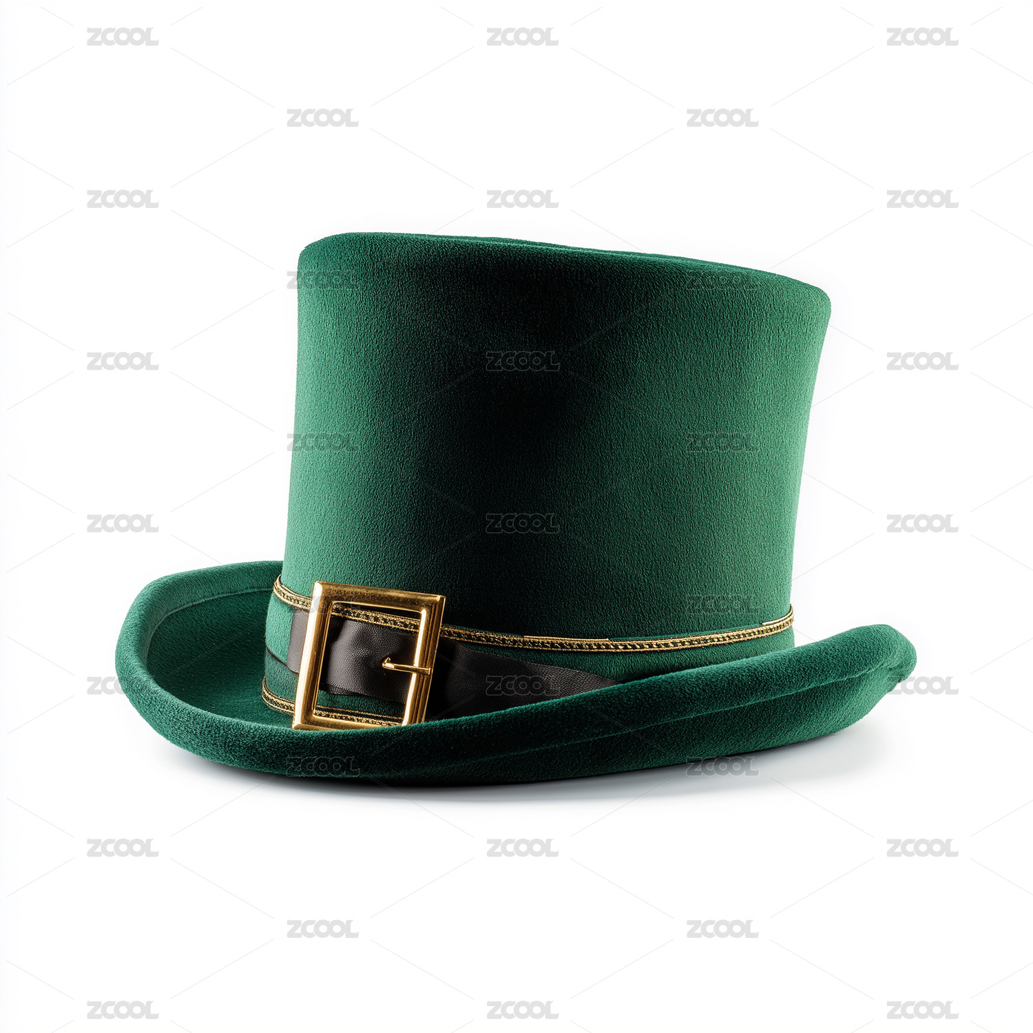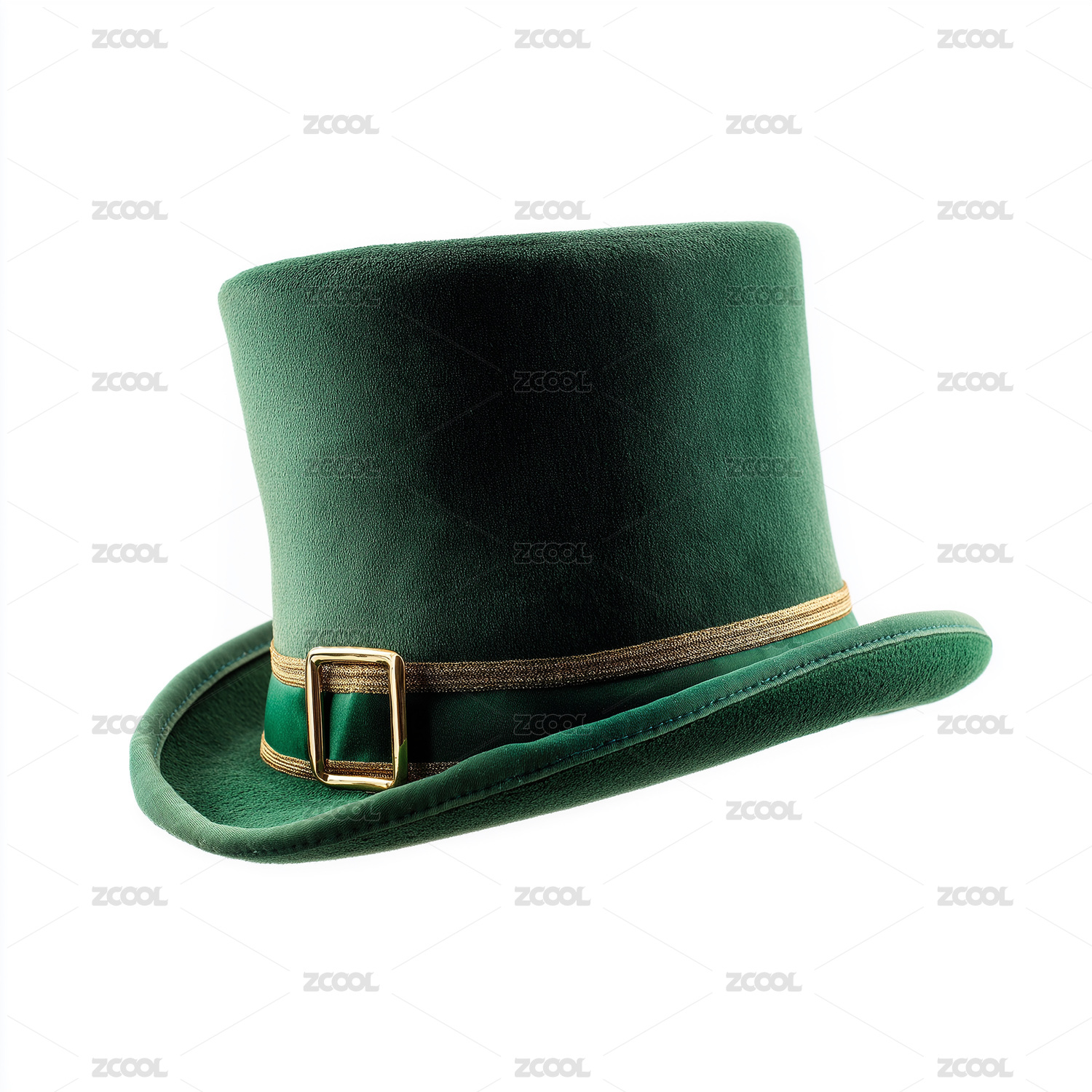 深綠高頂禮帽配金色扣飾懸浮白背景