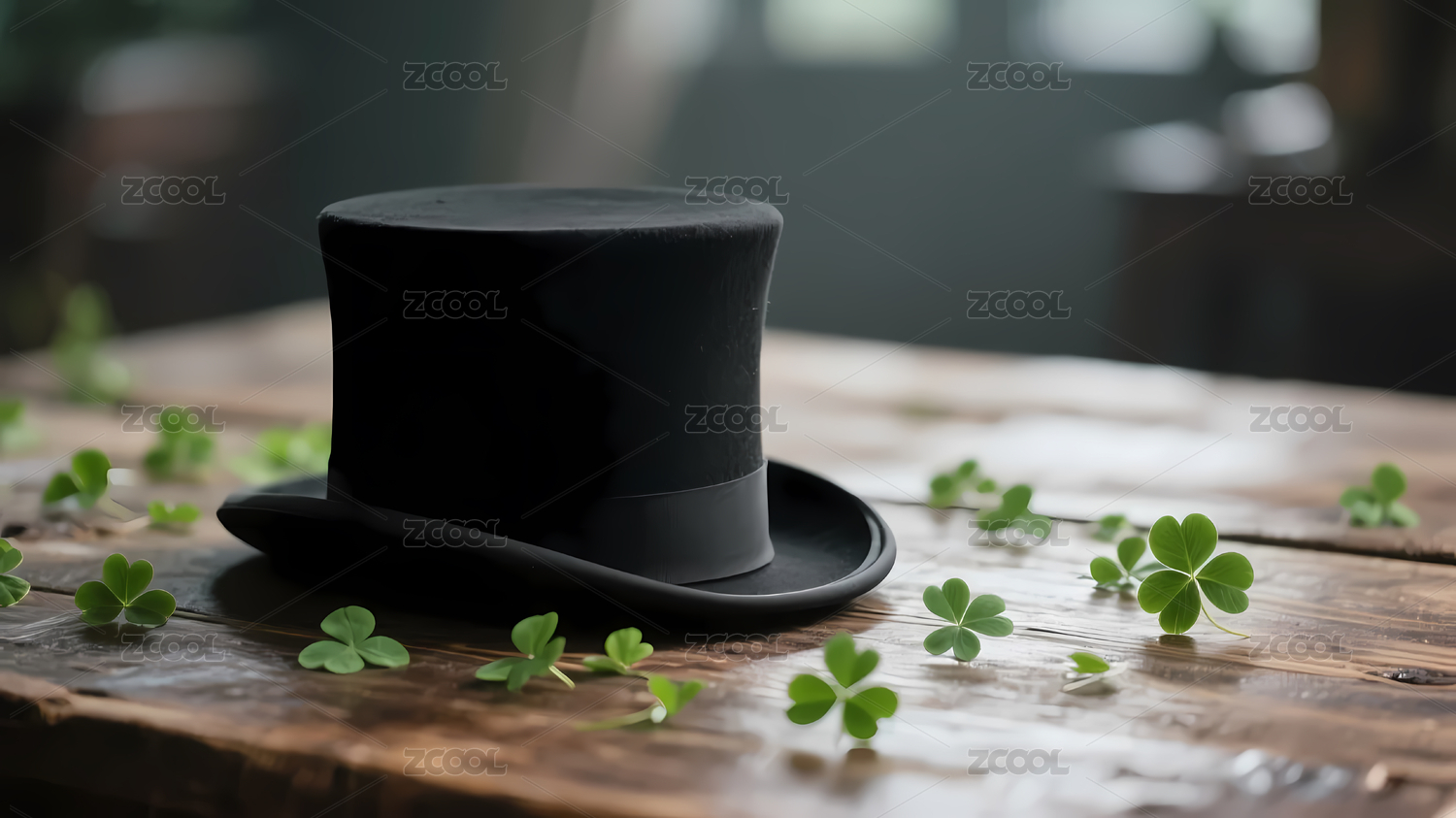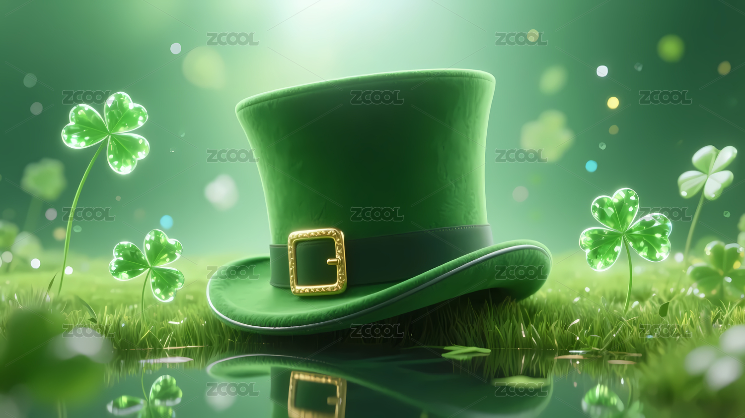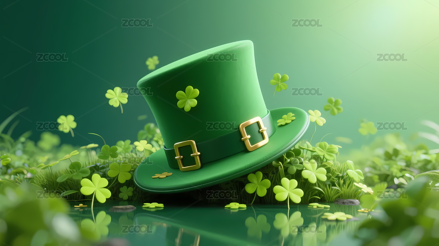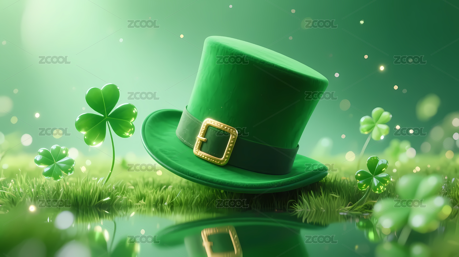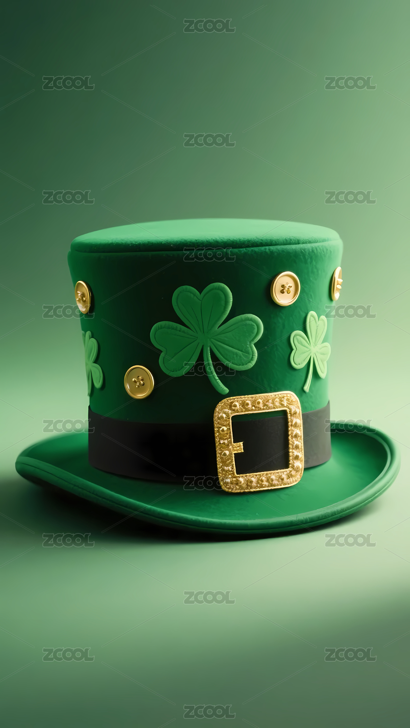 深綠高頂禮帽配金色扣飾懸浮白背景
