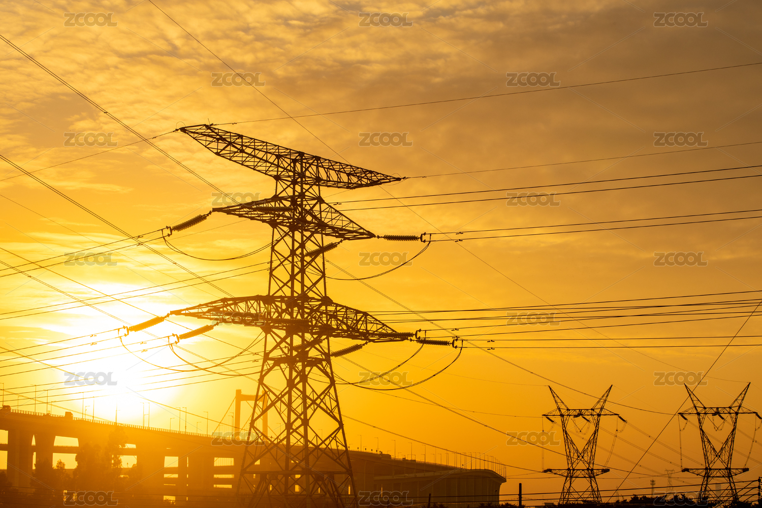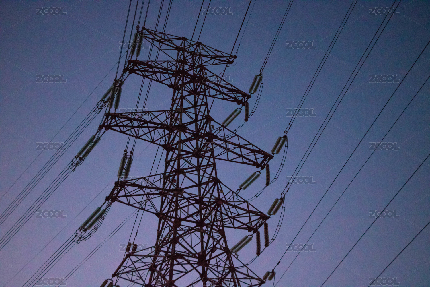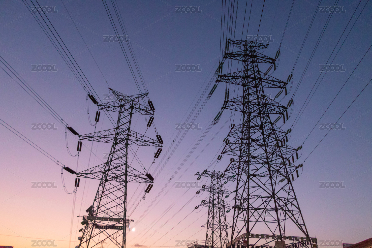 城市月亮下的超高壓線塔電力系統(tǒng)
