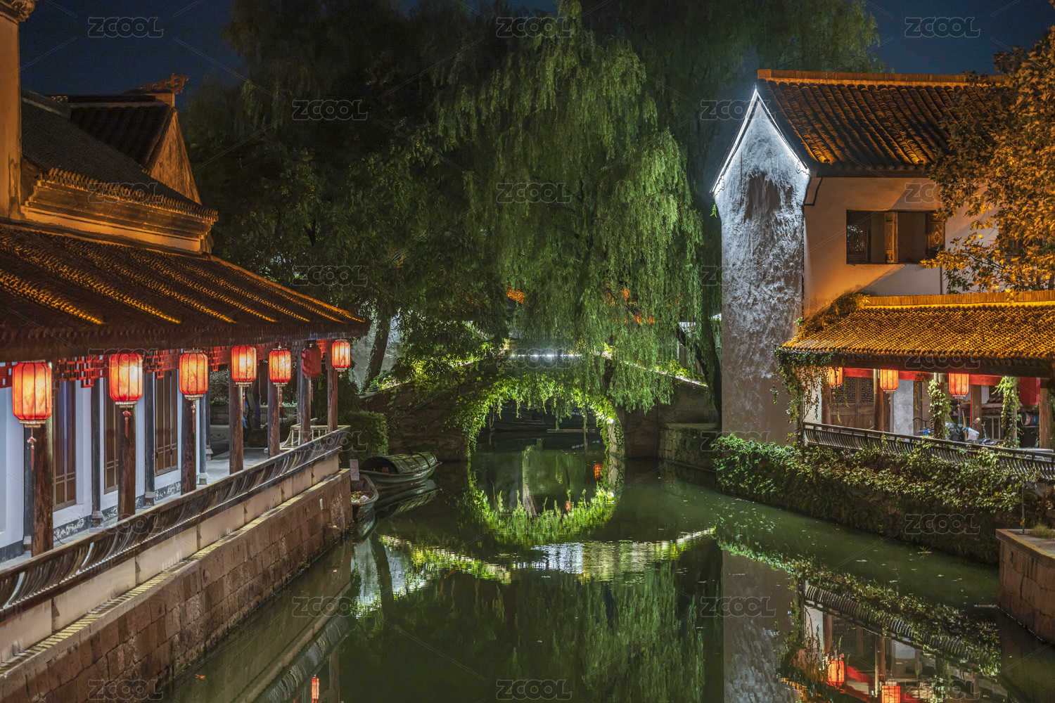 中國浙江紹興柯巖風景區(qū)柯巖魯鎮(zhèn)夜景