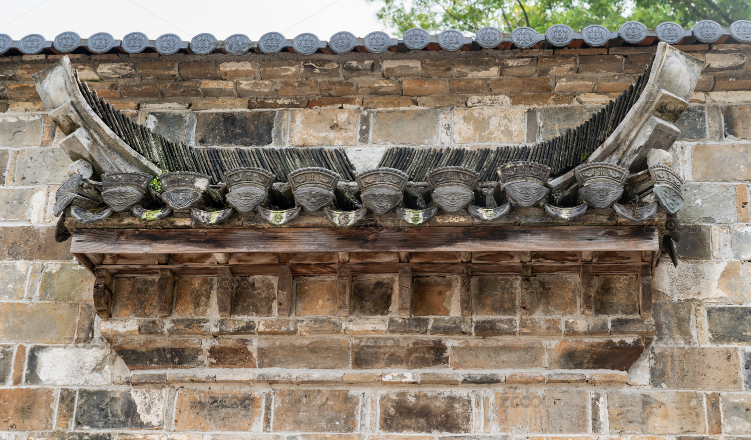 徽派民居門頭門罩石雕,中國安徽省盧村古民居