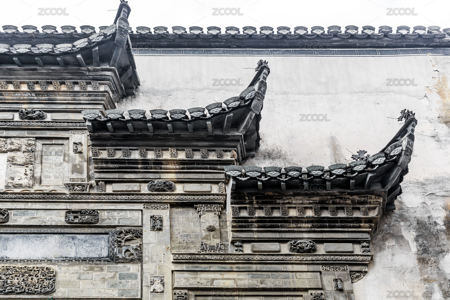 徽派民居門罩門頭,中國安徽省黃山市徽州區(qū)呈坎