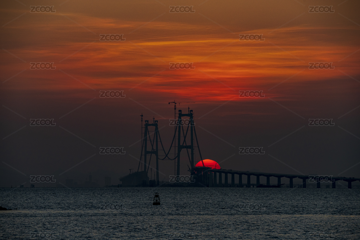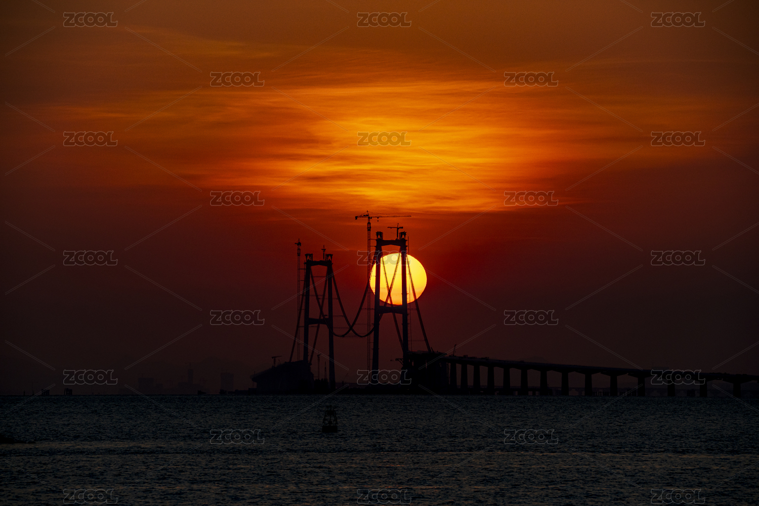 中國(guó)江蘇南京江心洲長(zhǎng)江大橋落日風(fēng)光