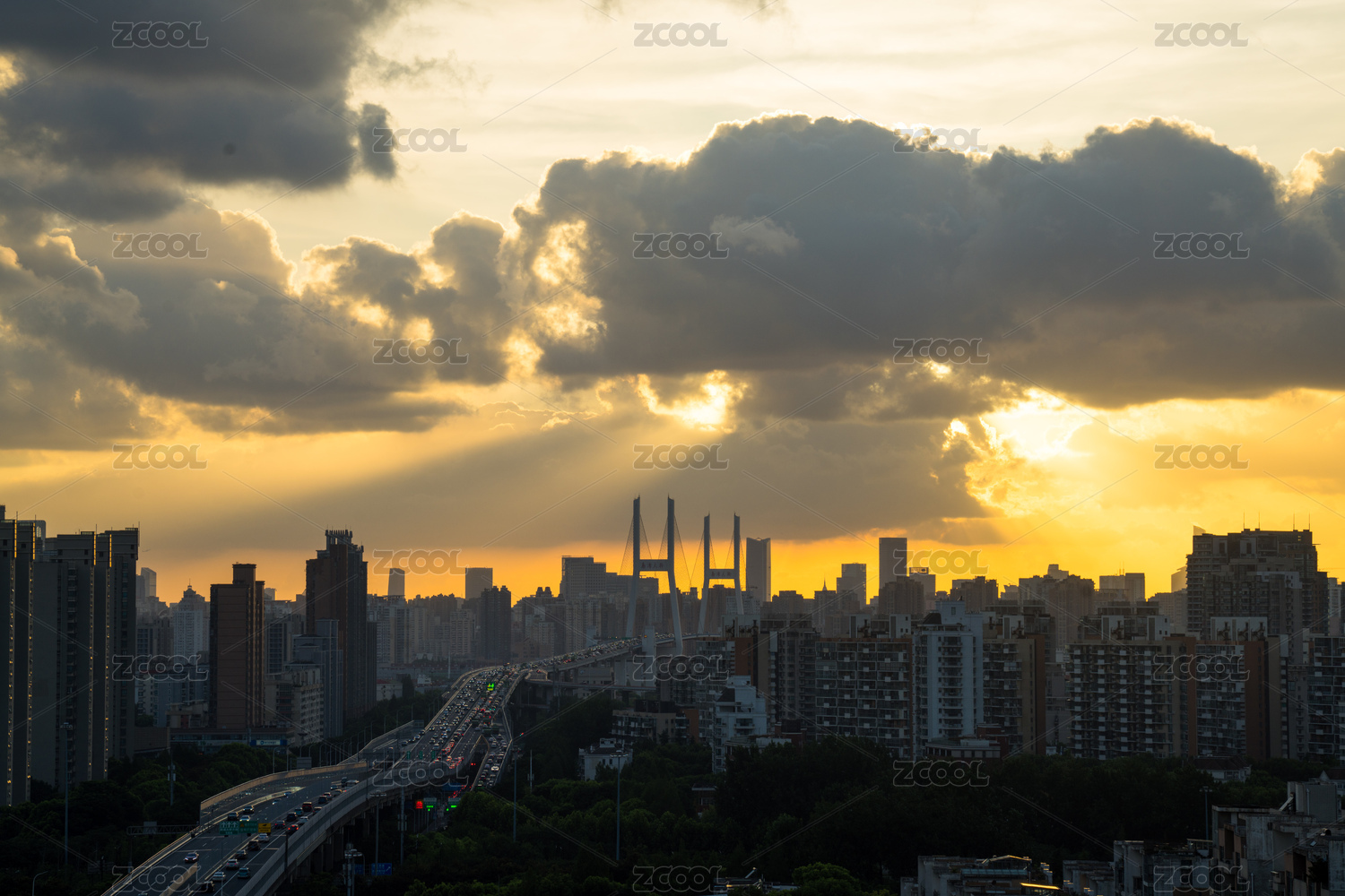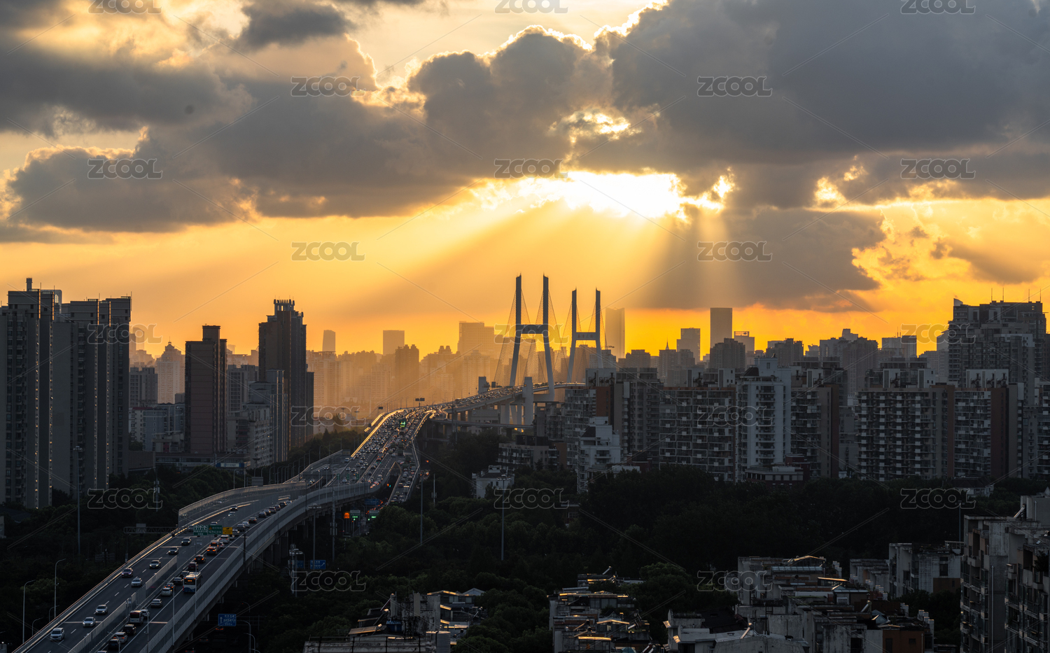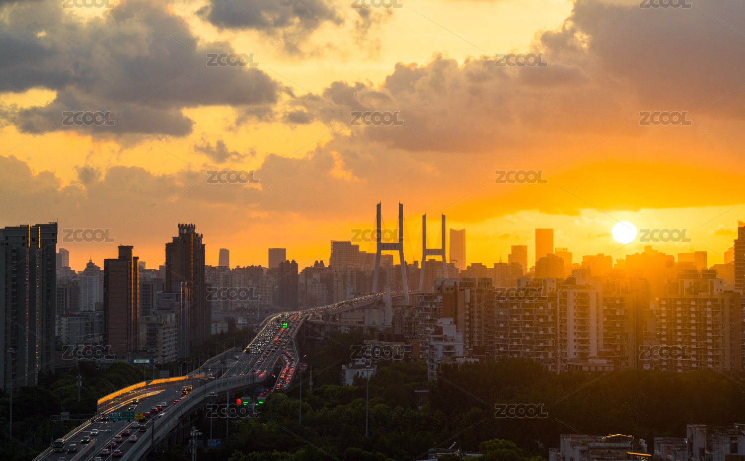 中國(guó)上海閔行區(qū)閔浦大橋落日風(fēng)光