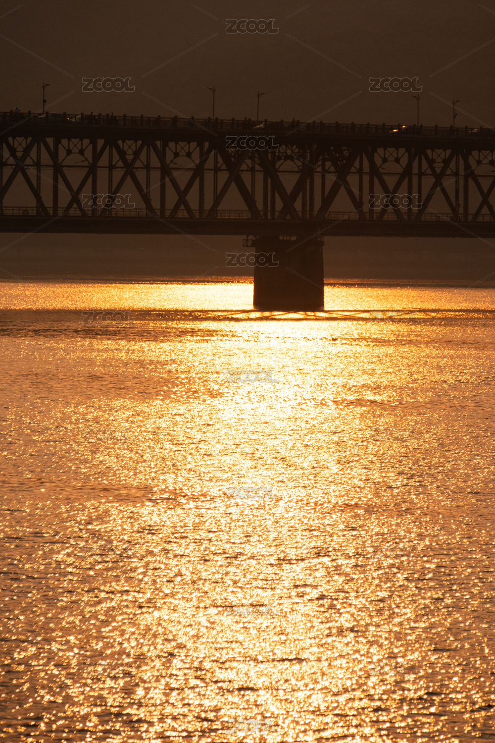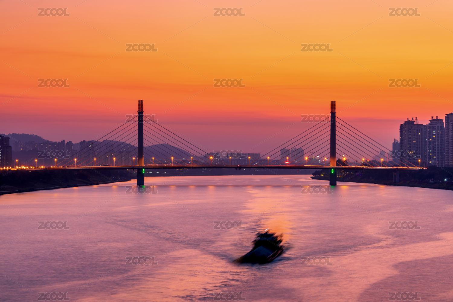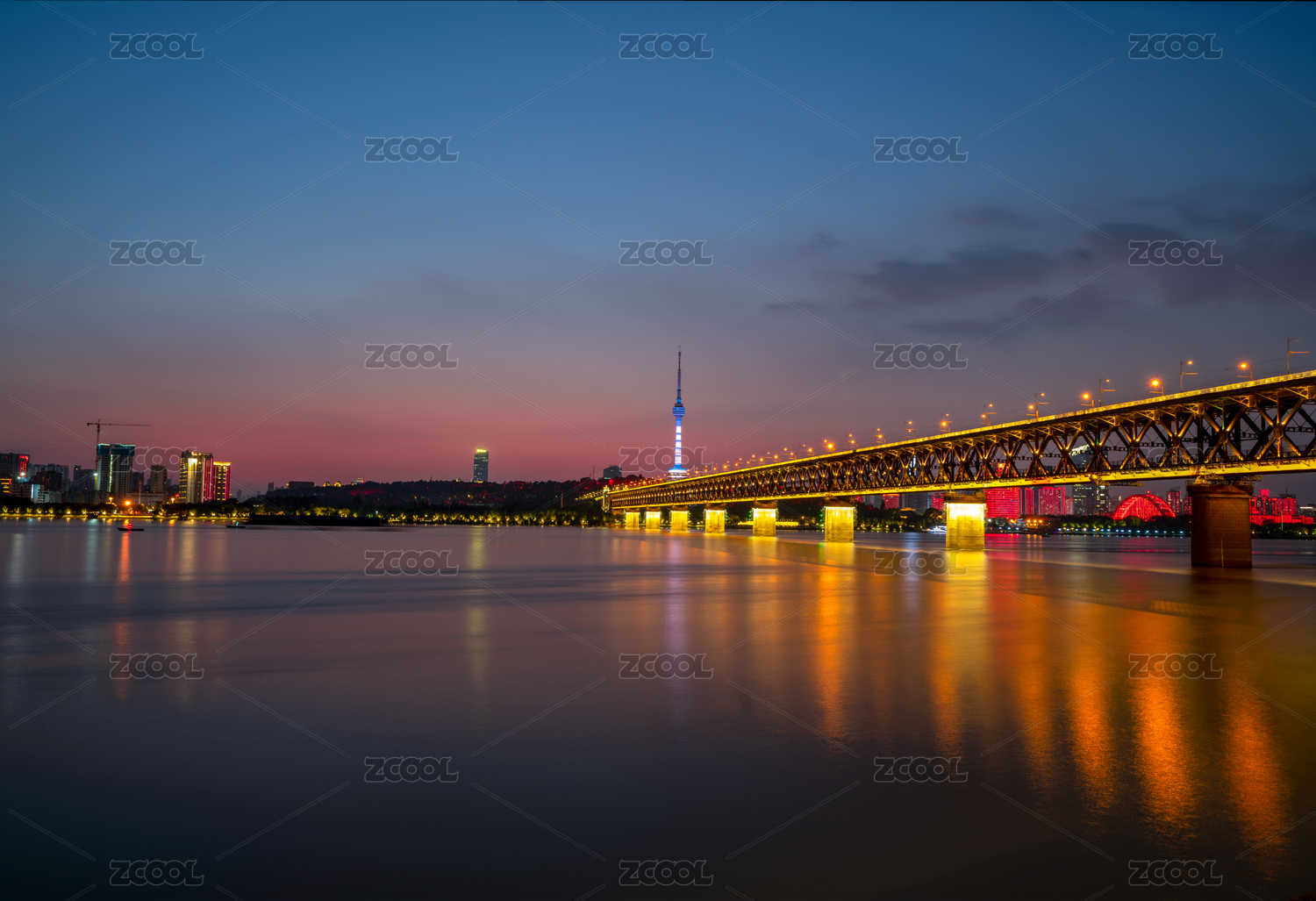 中國(guó)湖北武漢長(zhǎng)江大橋落日晚霞