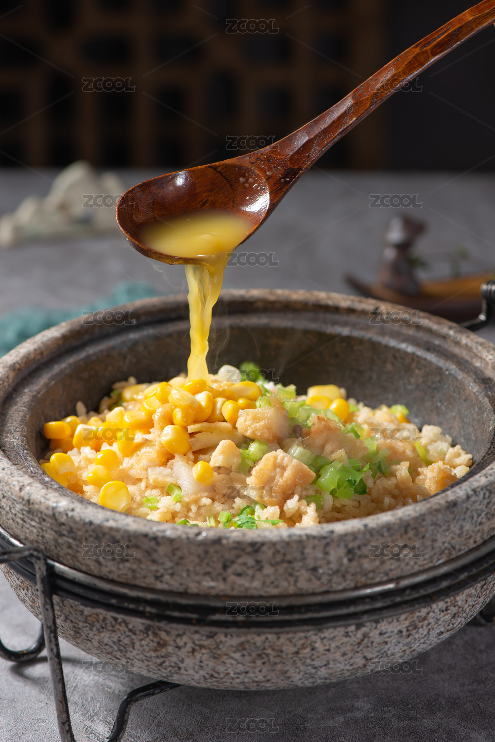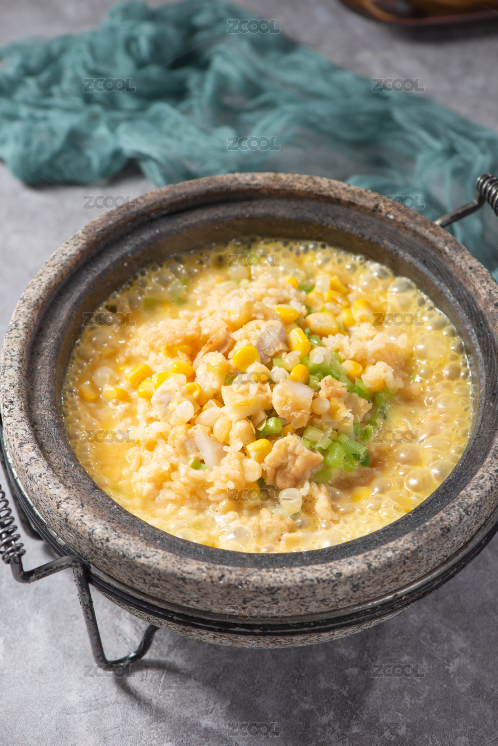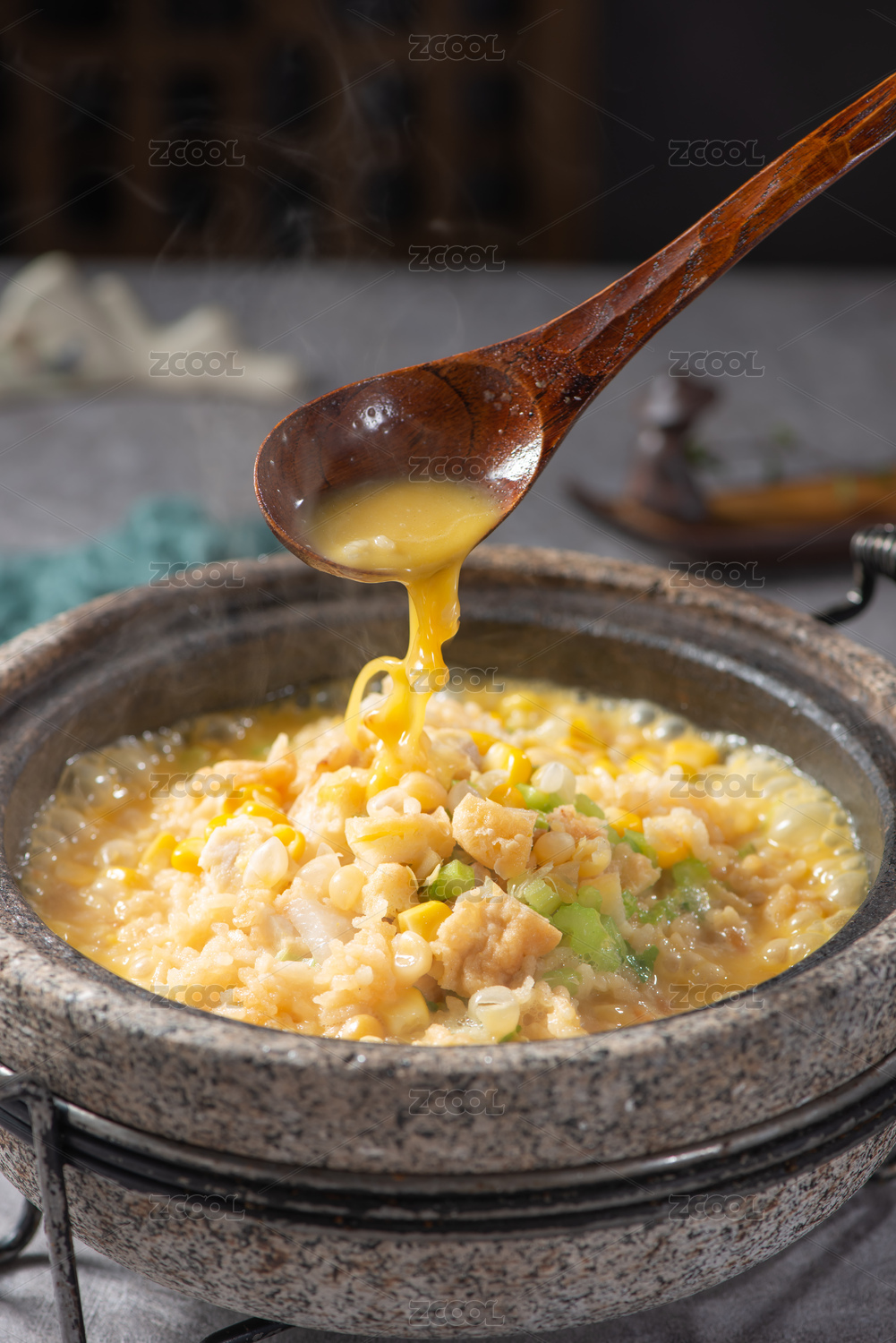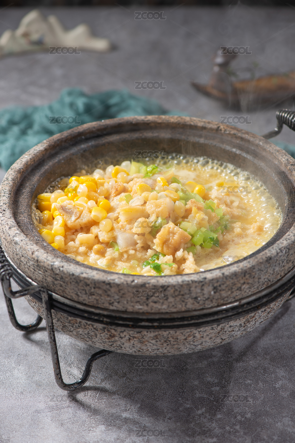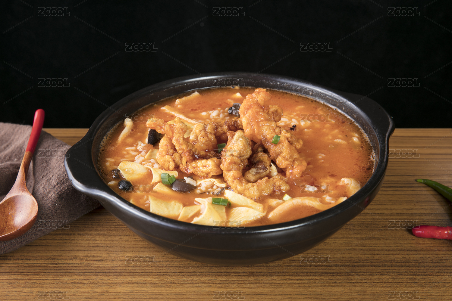 黑色砂鍋里的酥肉香菇豆腐皮湯飯