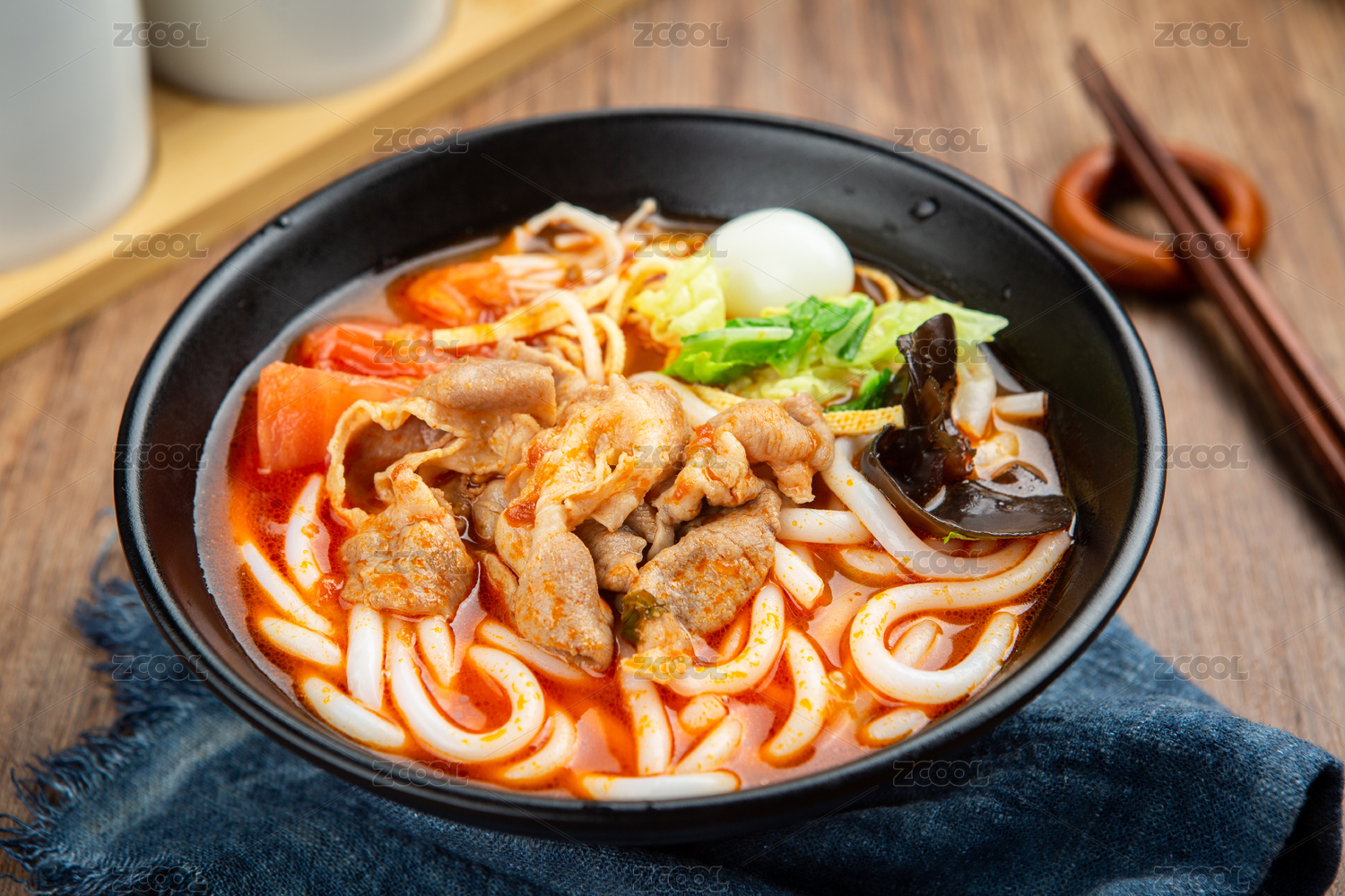 黑色大碗里的麻辣紅湯刀花魷魚(yú)米線米粉