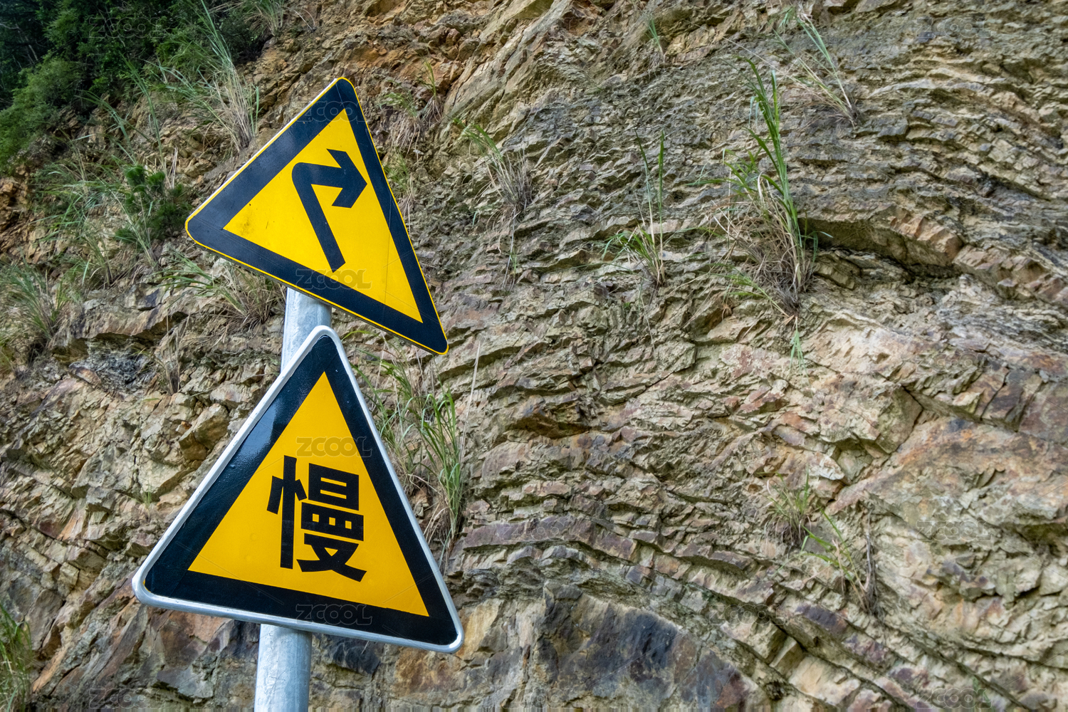 竹林前的交通標(biāo)志 路標(biāo)