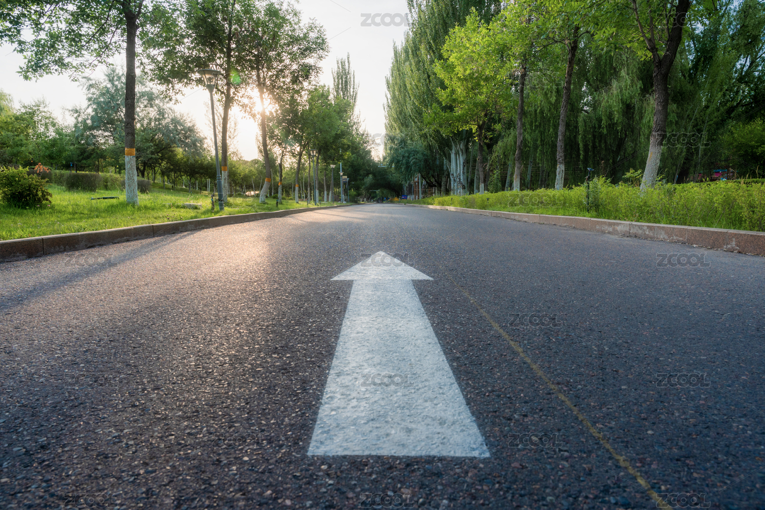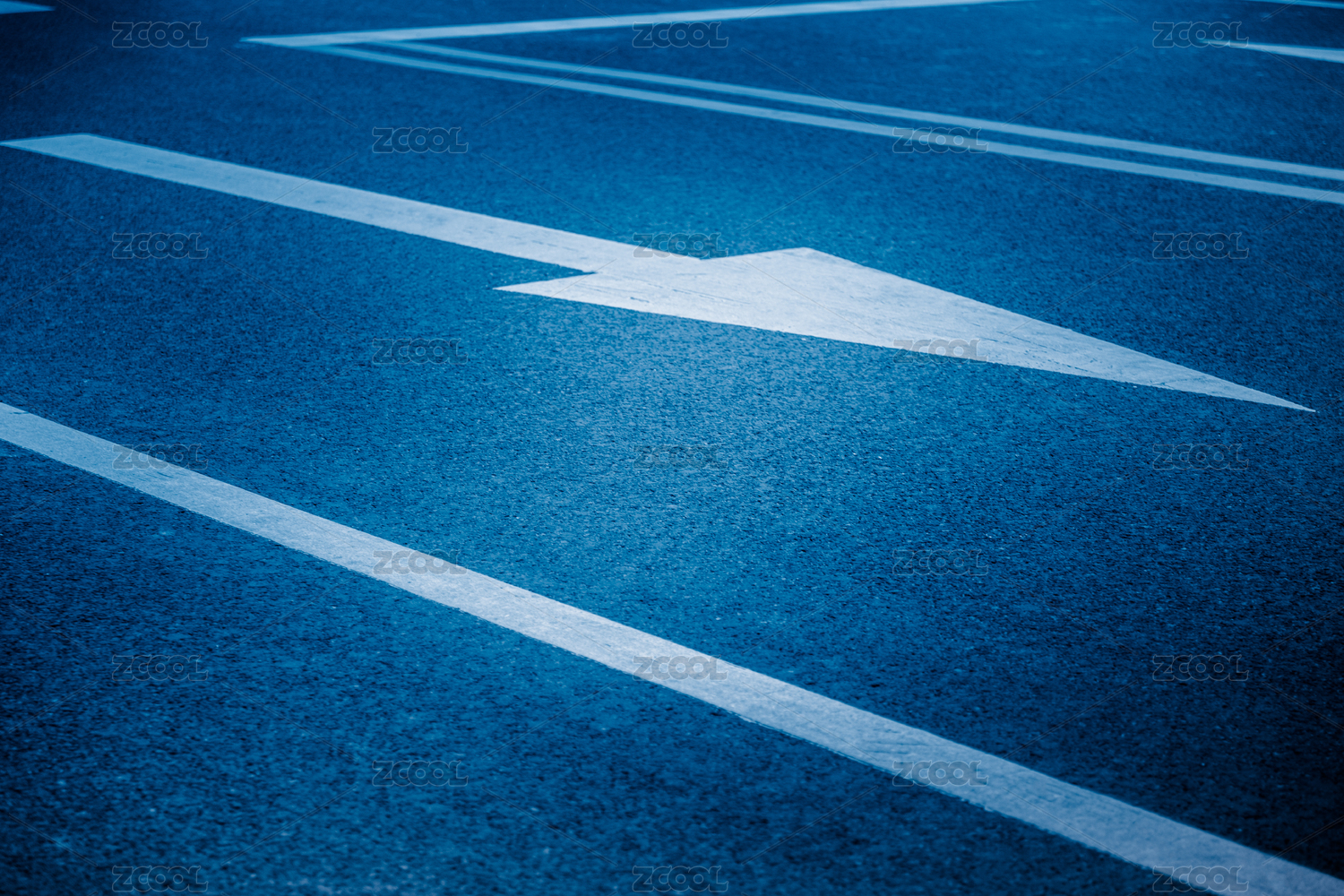 全畫(huà)幅鏡頭道路白色箭頭符號(hào)的。