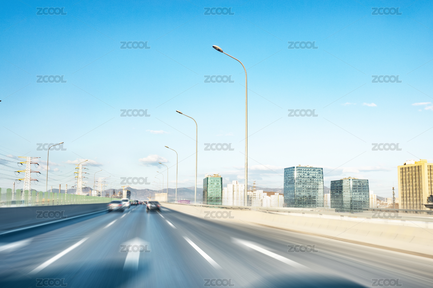 高架路柏油馬路汽車路方向地標(biāo)