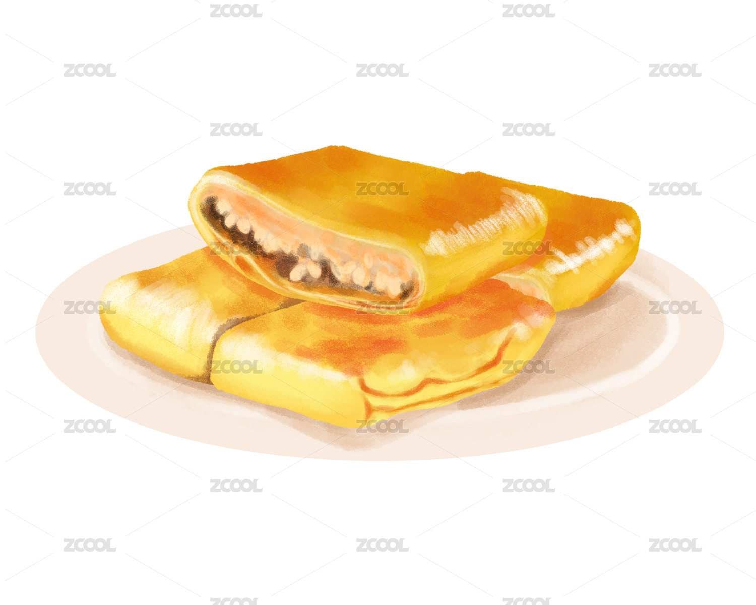 卡通手繪餐飲美食豆皮酥卷插畫