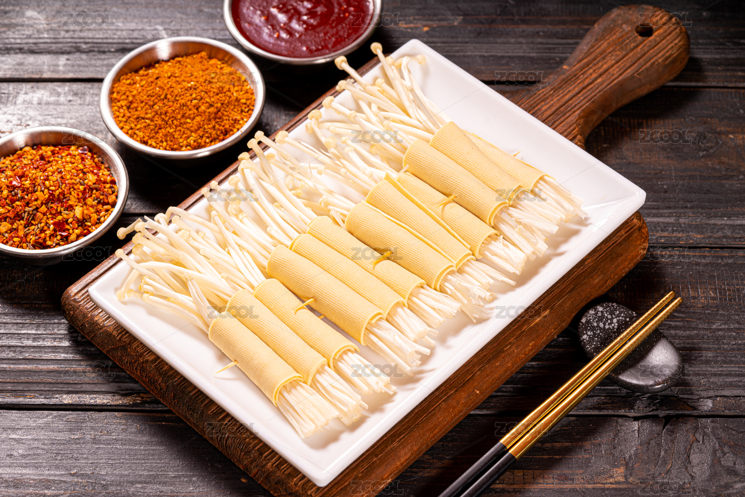 干豆腐卷金針菇