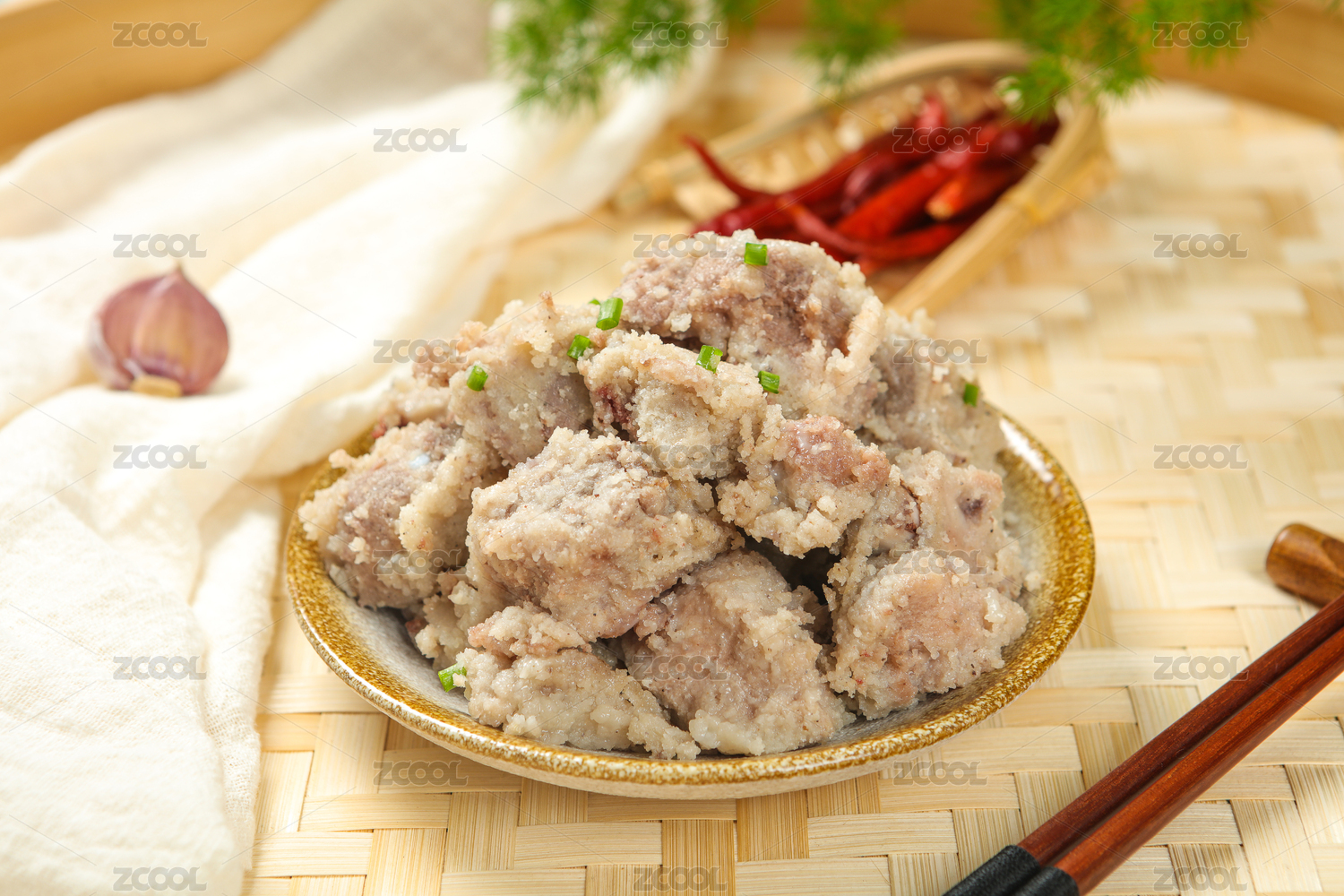 竹編小蒸籠里的粉蒸羊排排骨羊肉格格