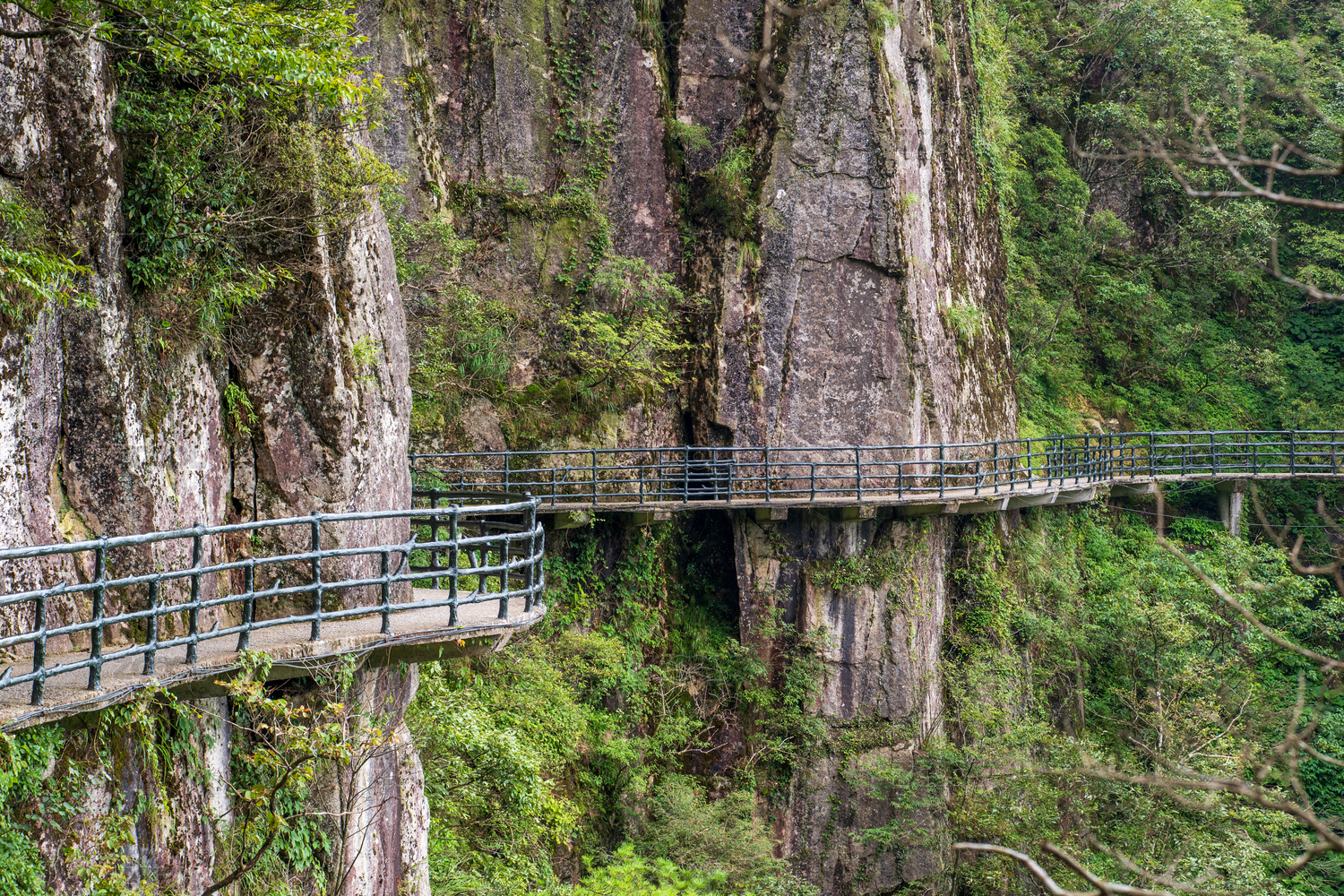 江西武功山羊獅慕景區(qū)奇峰上的山間棧道