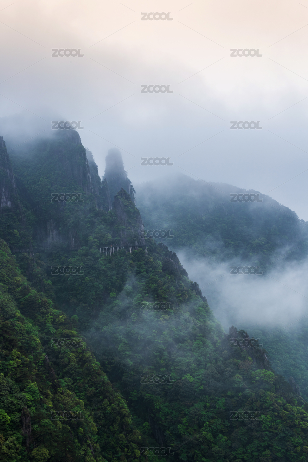 江西武功山羊獅慕景區(qū)云端棧道的綠色奇觀
