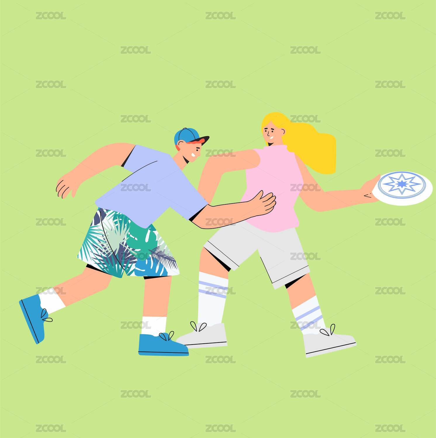 飛盤運動矢量插畫人物夏天