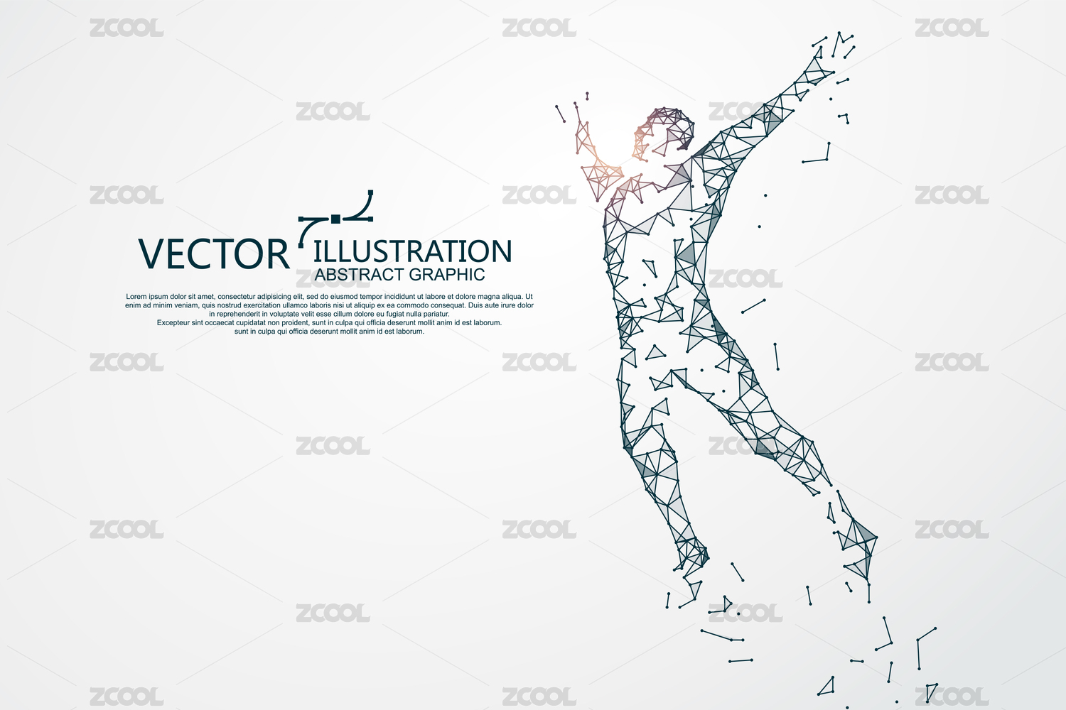 跳躍的人、矢量點(diǎn)線面組成跳躍的人