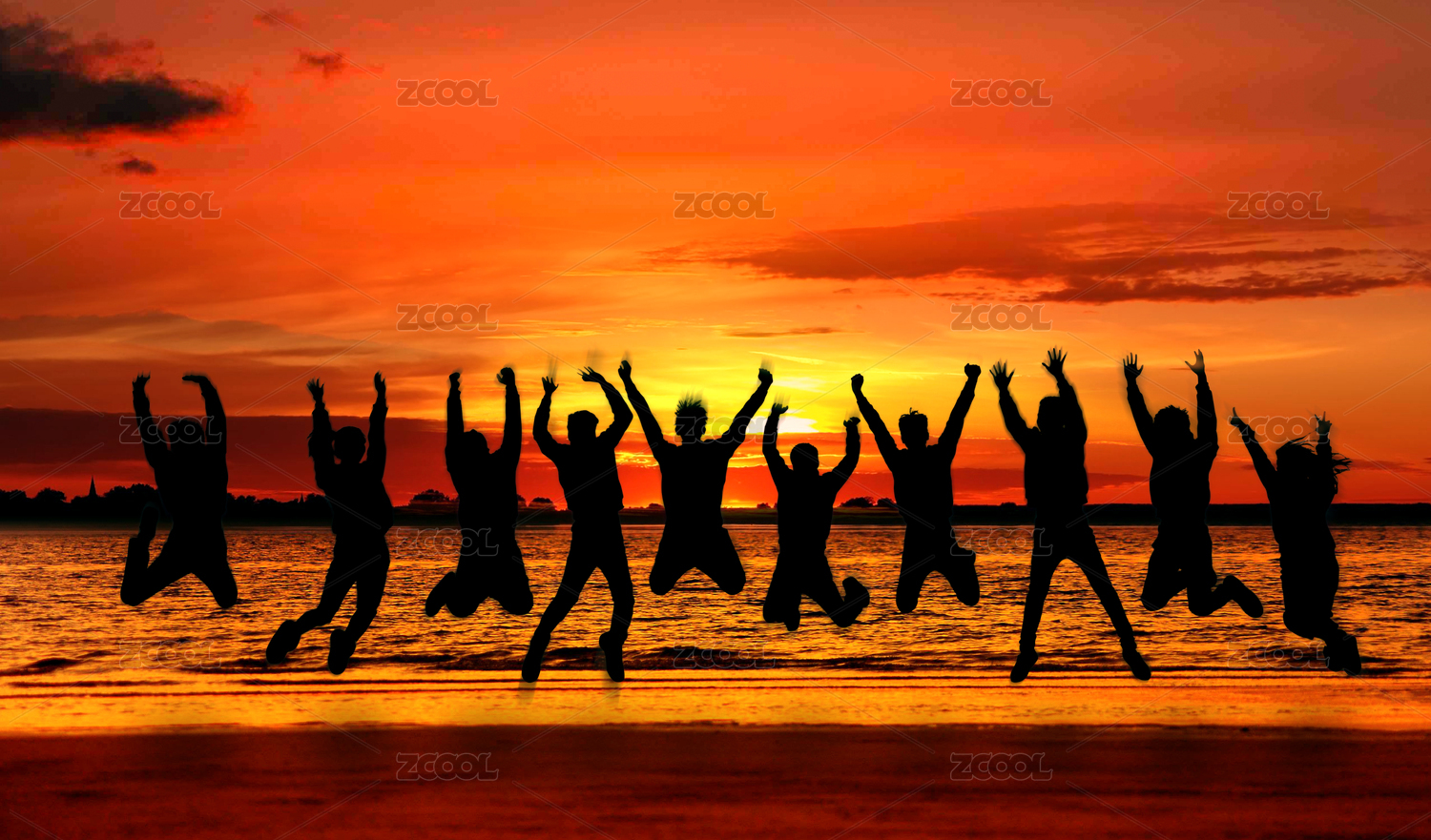 在美麗的戶(hù)外風(fēng)景開(kāi)心跳躍的青年男女