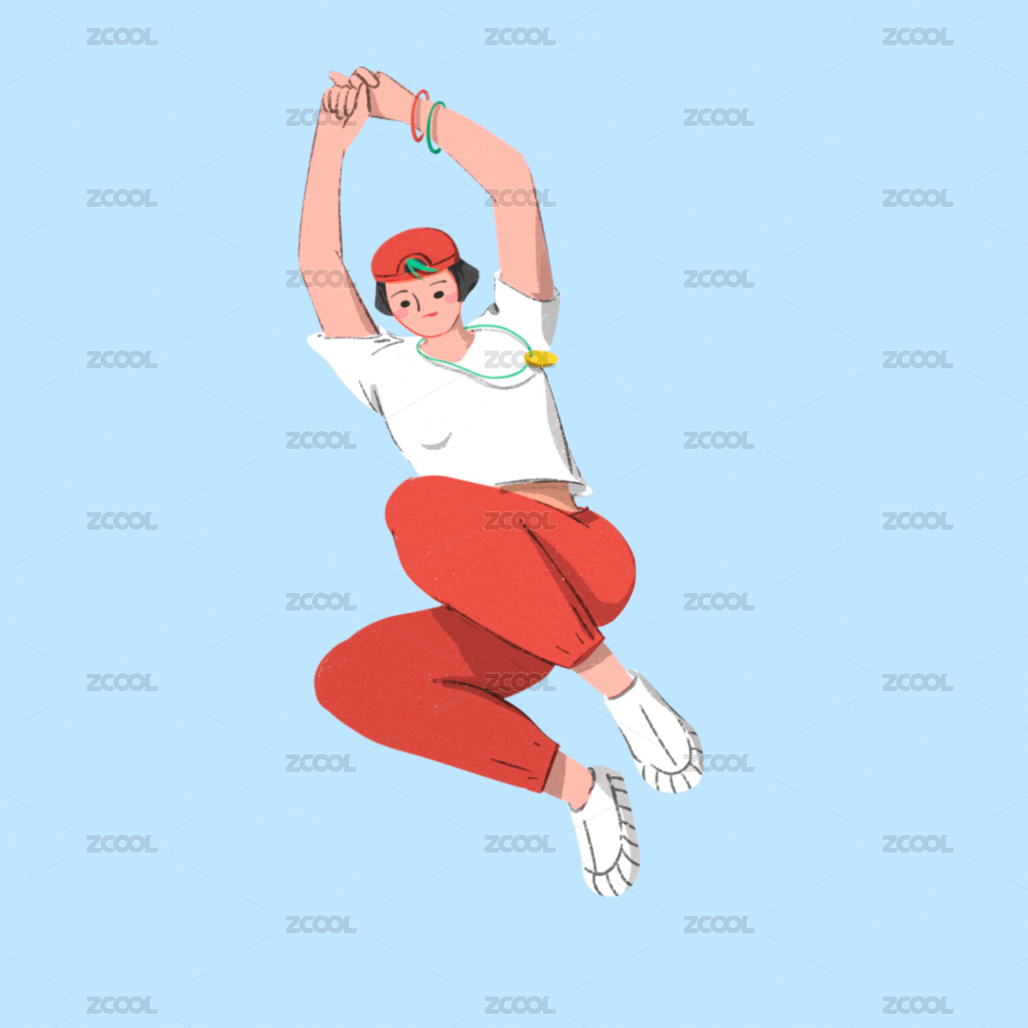 卡通陽(yáng)光跳躍的女孩插畫(huà)