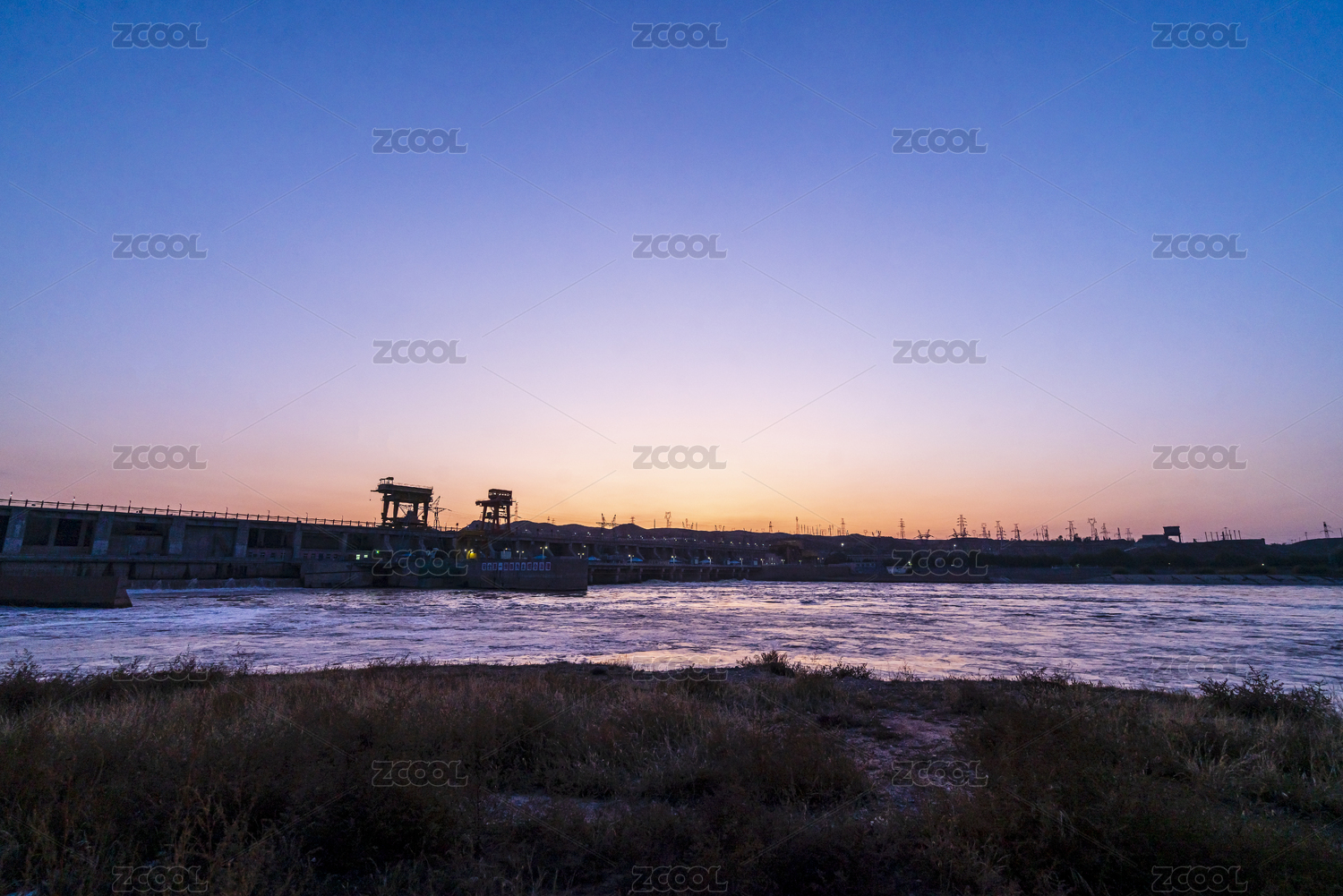 寧夏青銅峽黃河大峽谷攔河大壩傍晚夕陽