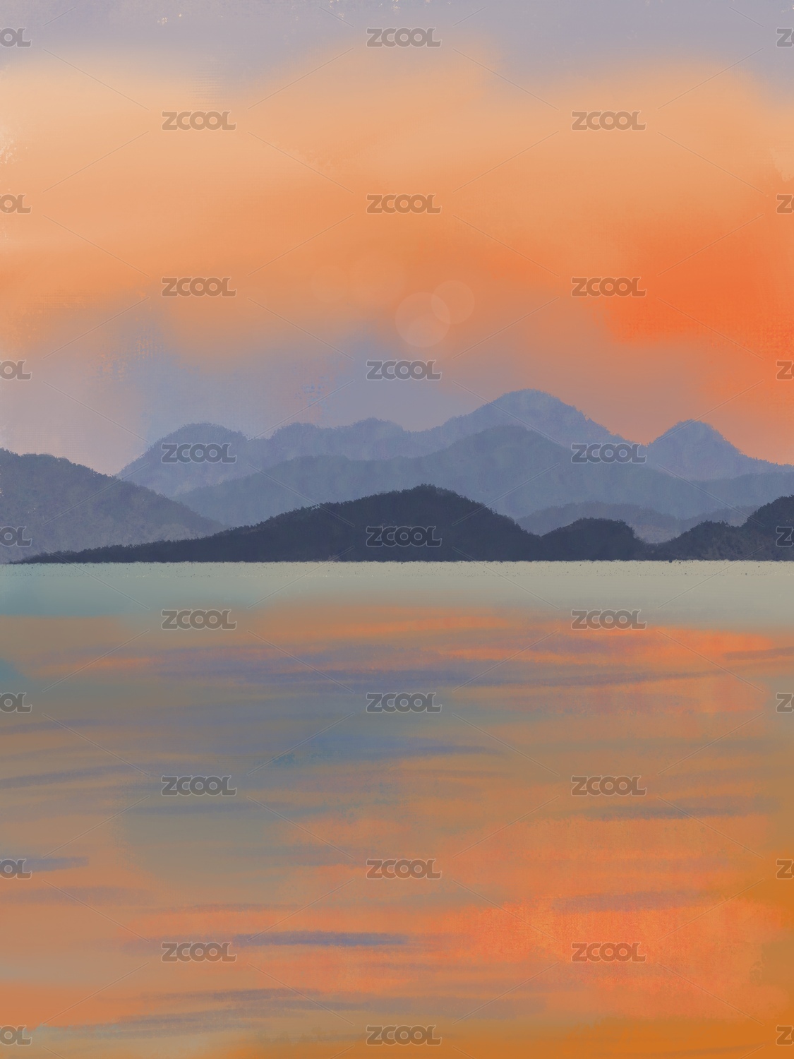西湖晚霞景色