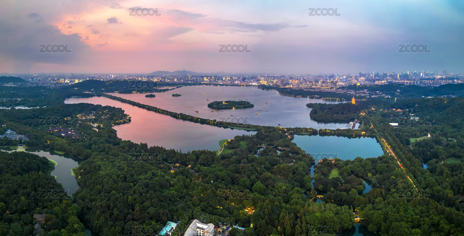 杭州城市風光和西湖晚霞