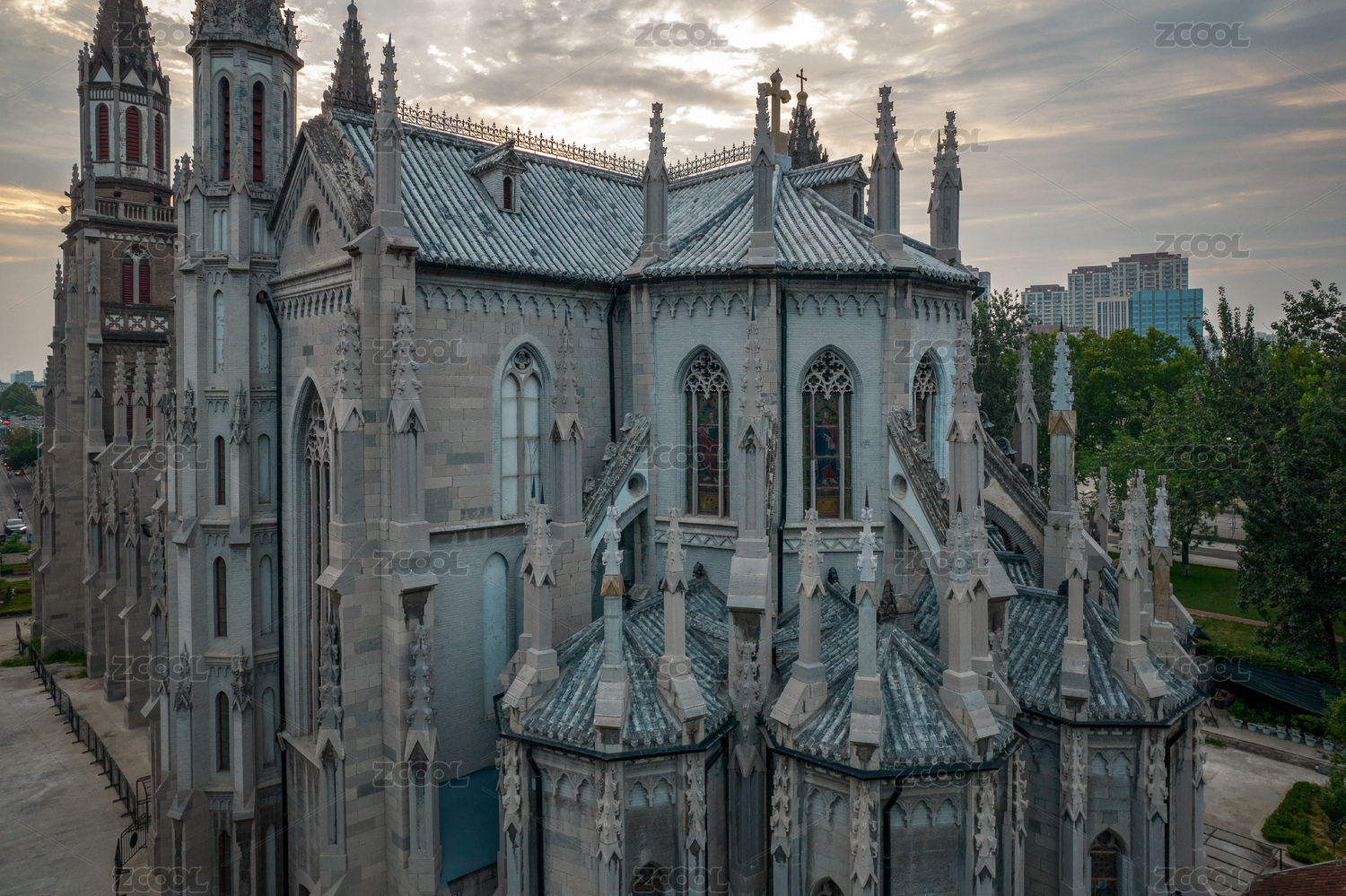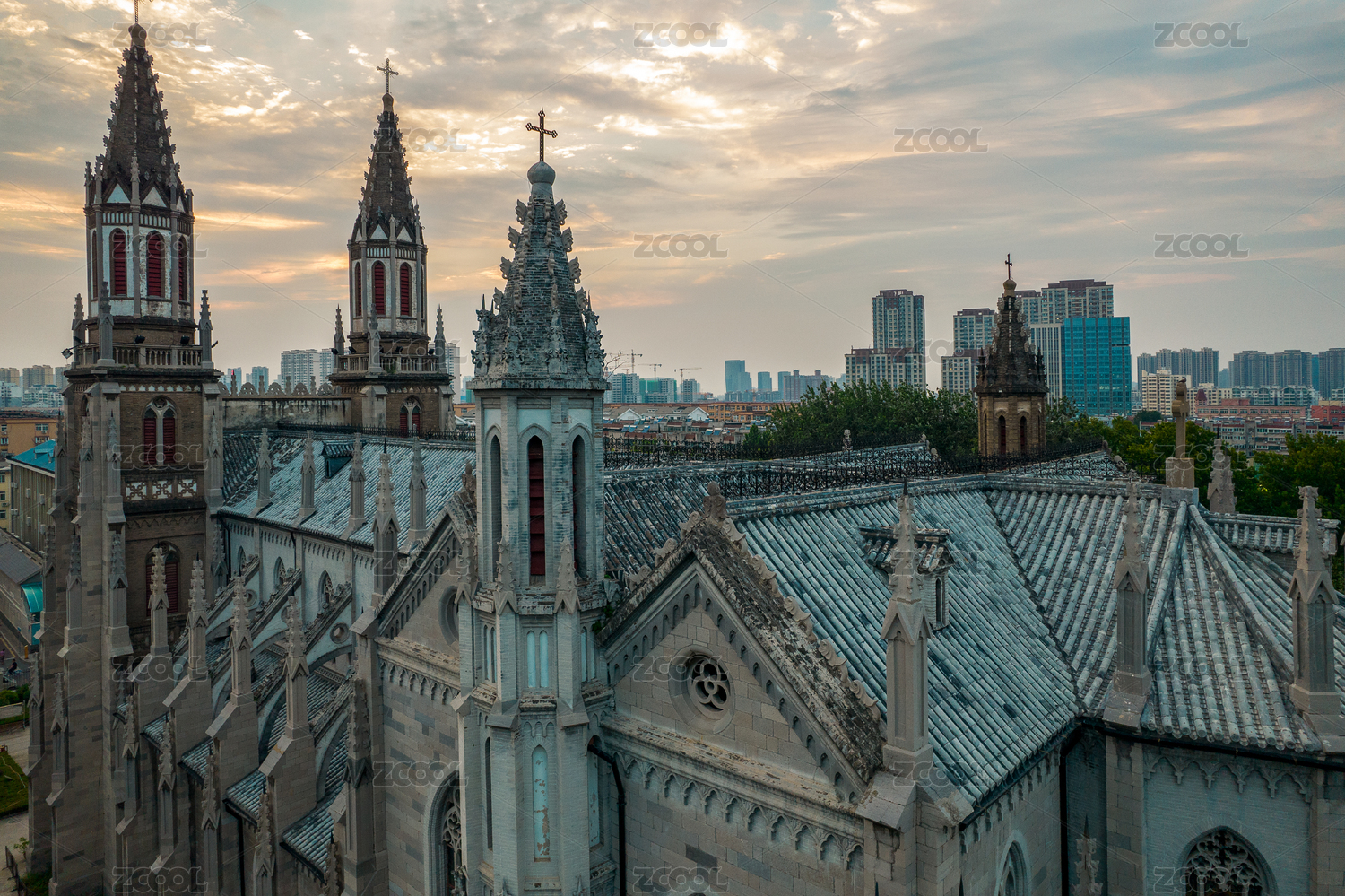 中國山東省濟南市洪家樓天主教堂航拍